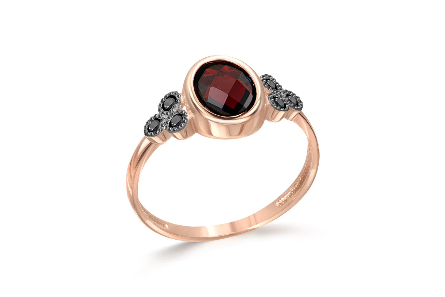 Мастера компании NEWGOLD, приложив всё свое мастерство и искусство, создали для Вас на нашем собственном производстве Кольцо из красного золота с гранатом и 6 фианитами.