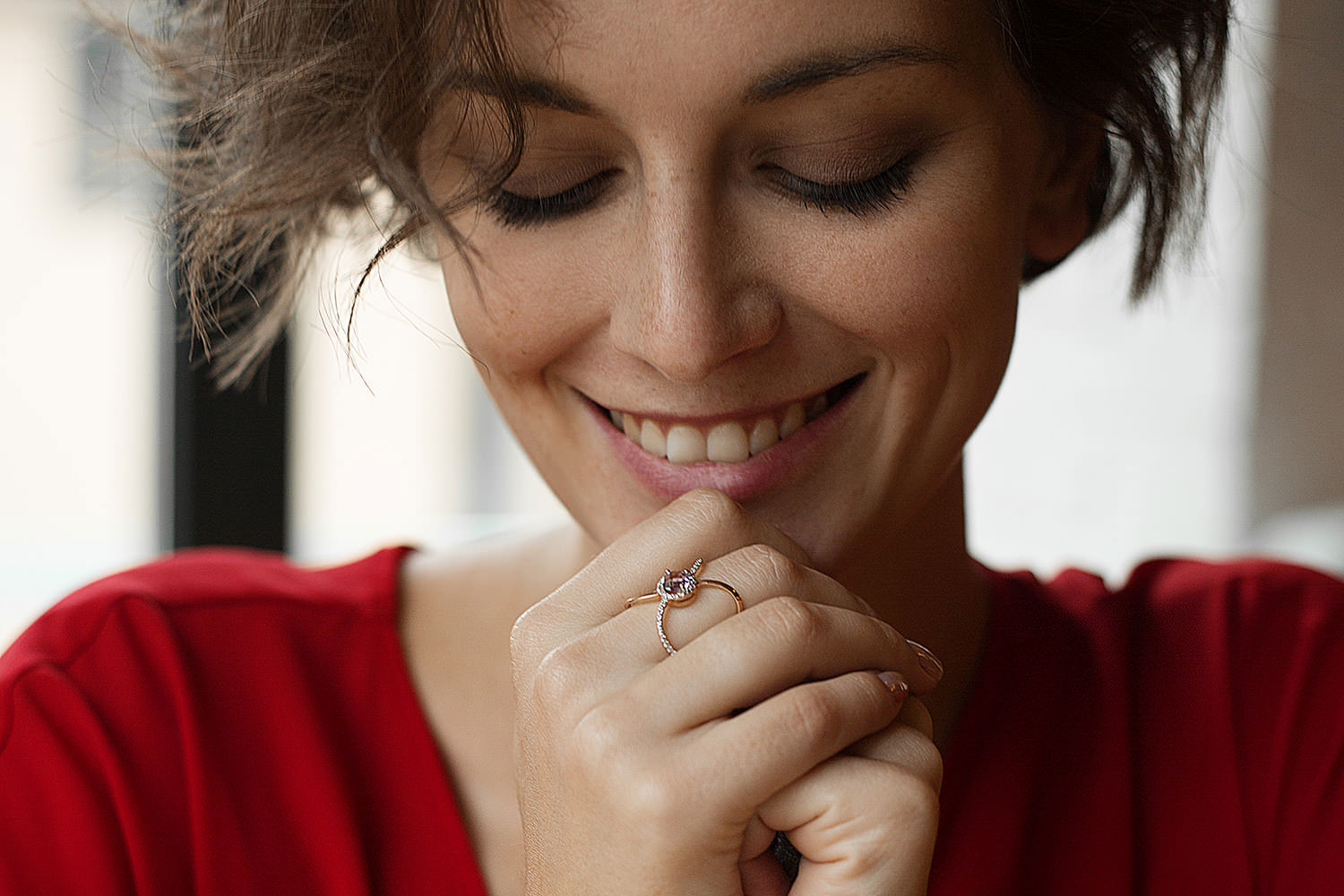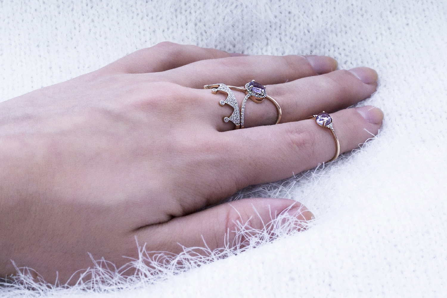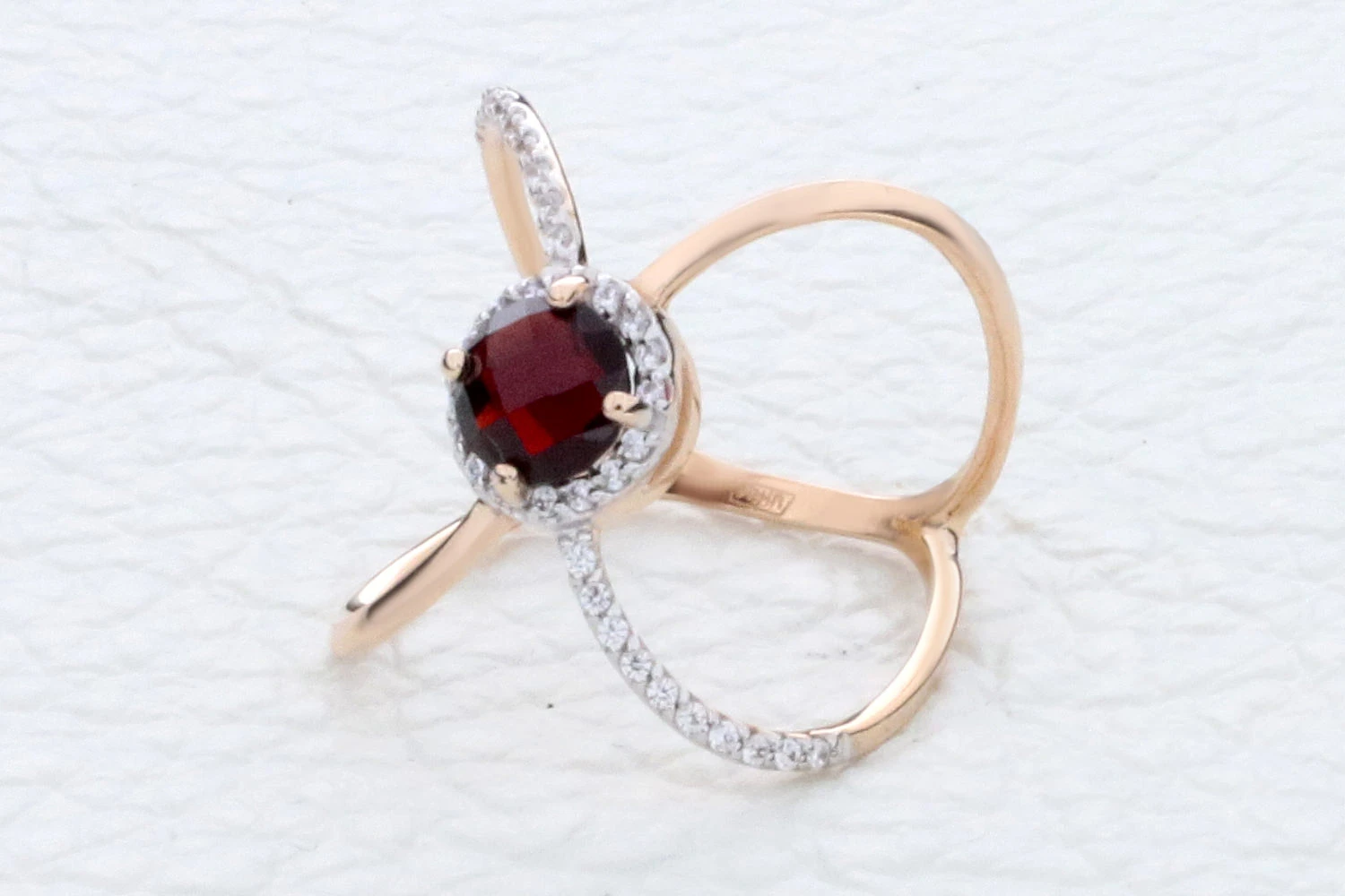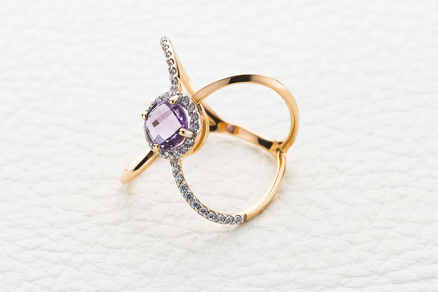 Мастера компании NEWGOLD, приложив всё свое мастерство и искусство, создали для Вас на нашем собственном производстве Кольцо из красного золота с аметистом и 36 фианитами.