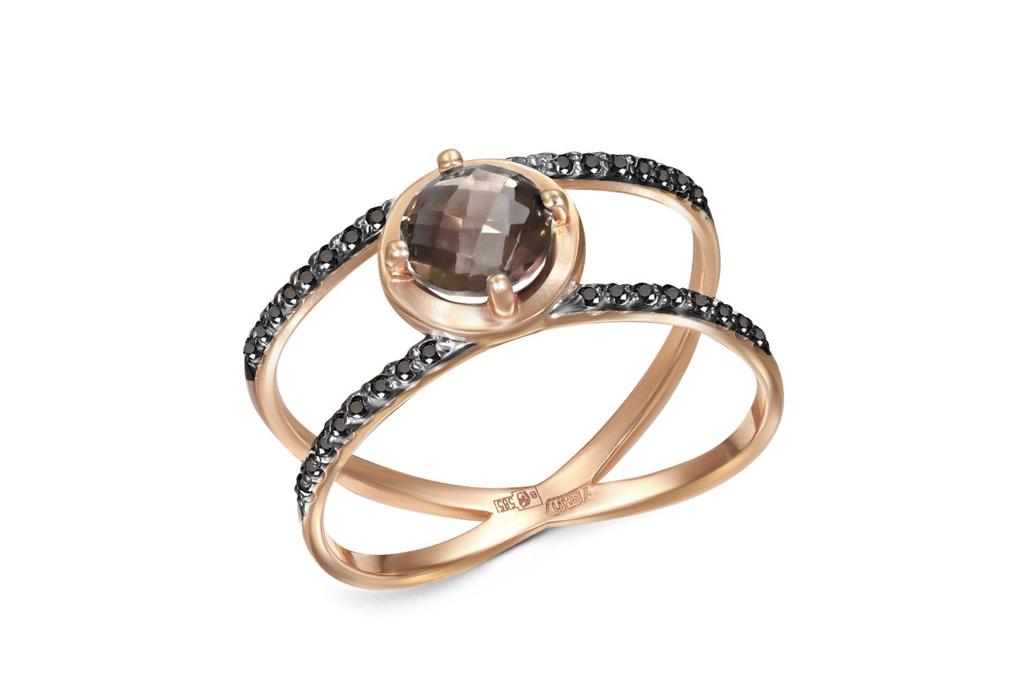 Мастера компании NEWGOLD, приложив всё свое мастерство и искусство, создали для Вас на нашем собственном производстве Кольцо из красного золота с раухтопазом и 32 фианитами.
