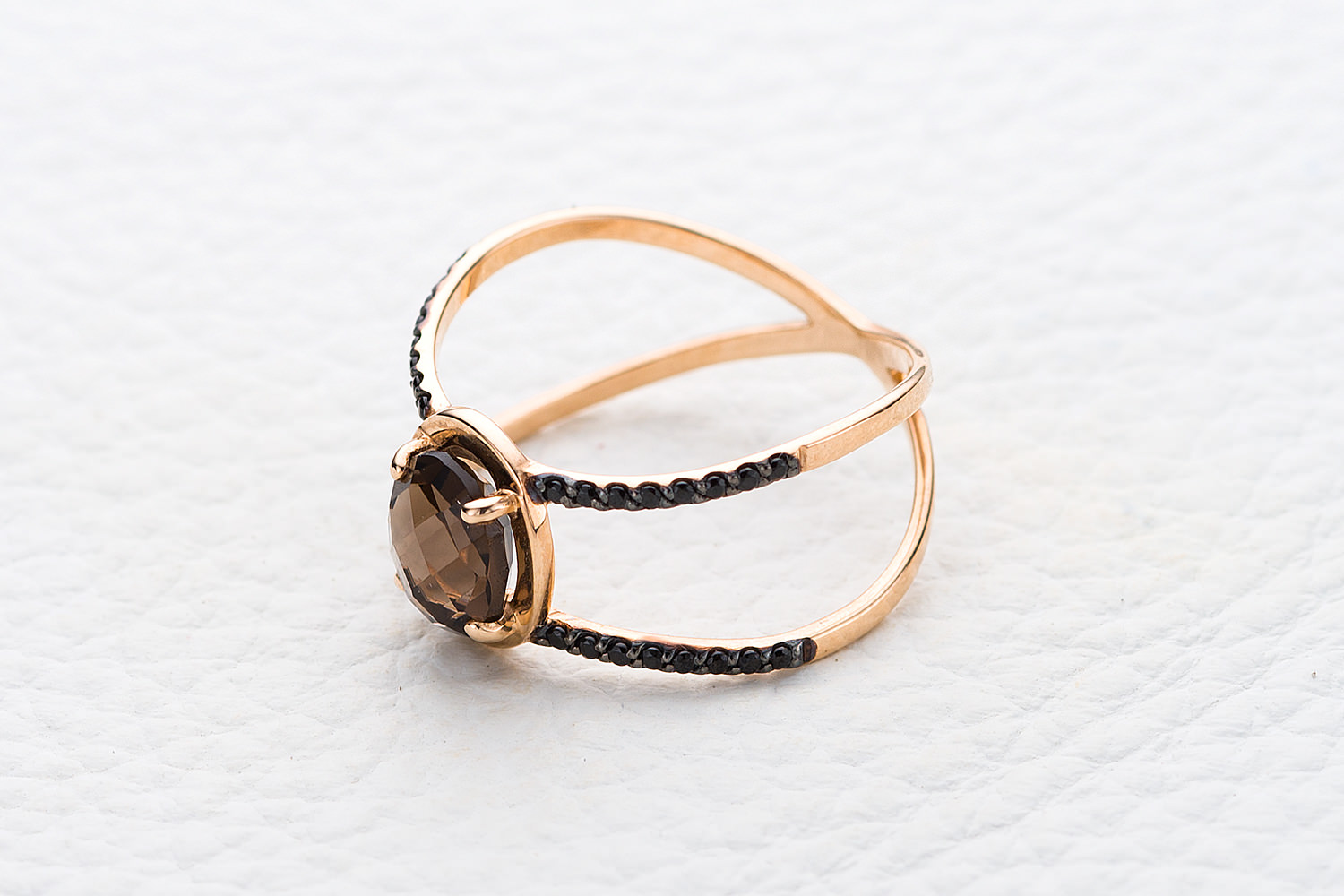 Мастера компании NEWGOLD, приложив всё свое мастерство и искусство, создали для Вас на нашем собственном производстве Кольцо из красного золота с раухтопазом и 32 фианитами.