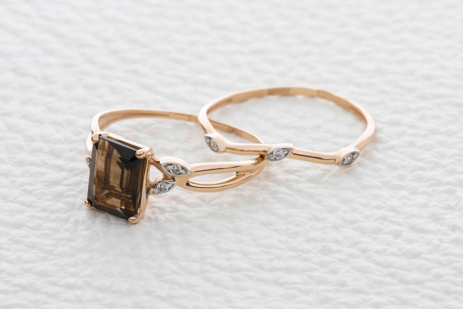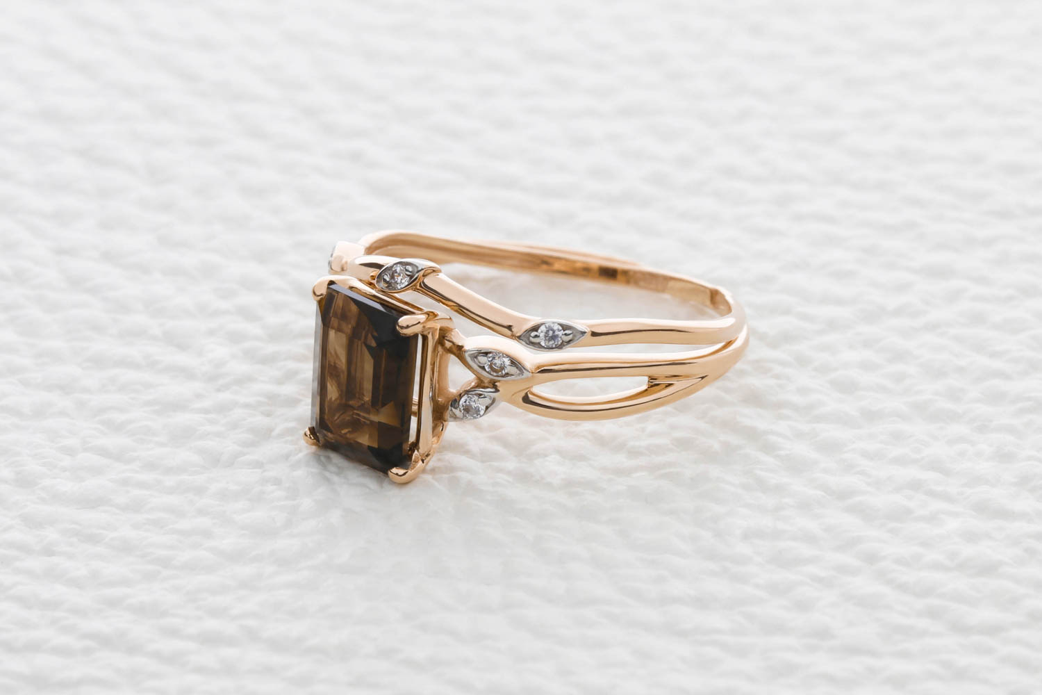 Мастера компании NEWGOLD, приложив всё свое мастерство и искусство, создали для Вас на нашем собственном производстве Кольцо Веточка из красного золота с раухтопазом и 7 фианитами.