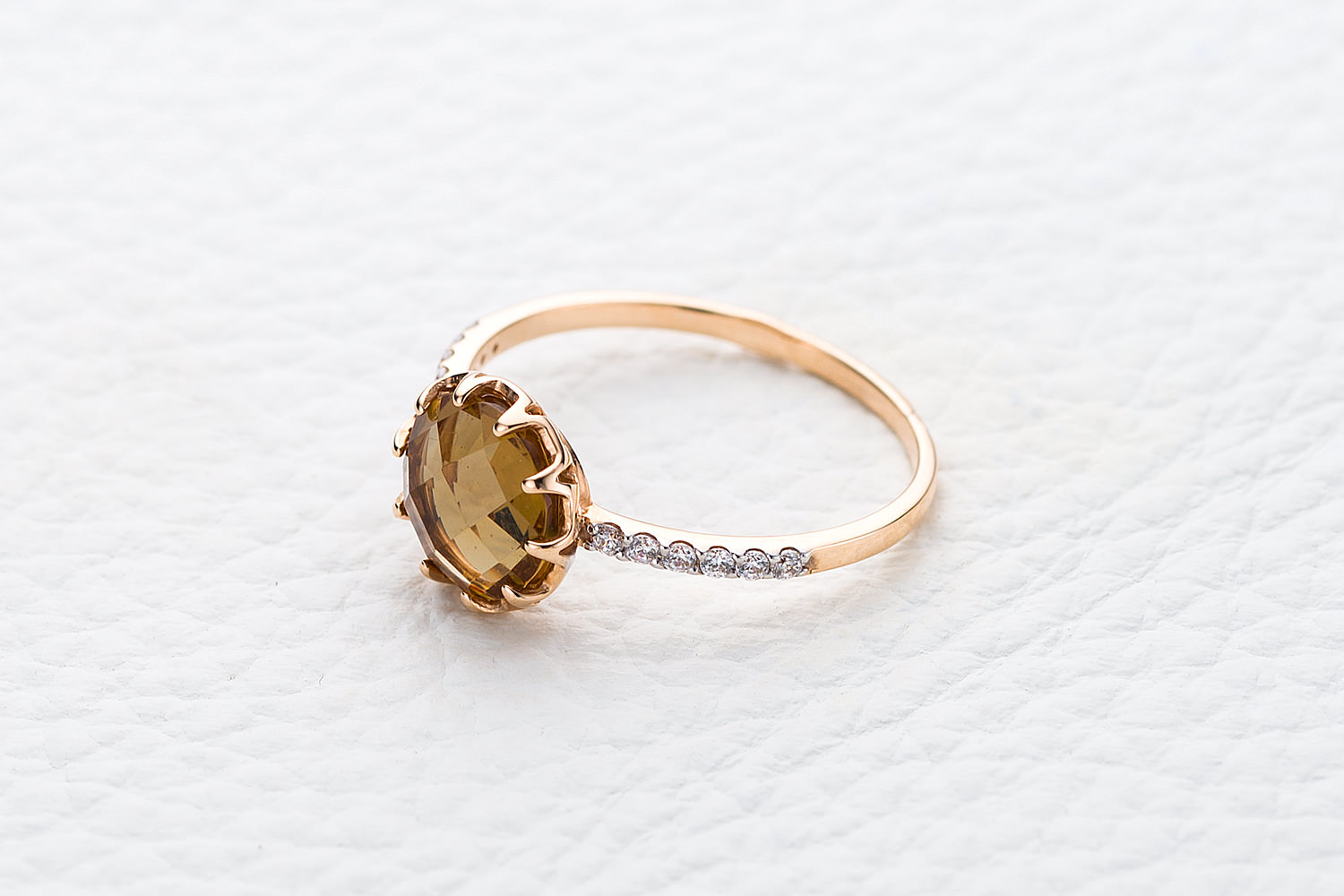 Мастера компании NEWGOLD, приложив всё свое мастерство и искусство, создали для Вас на нашем собственном производстве Кольцо из красного золота с султанитом и 12 фианитами.
