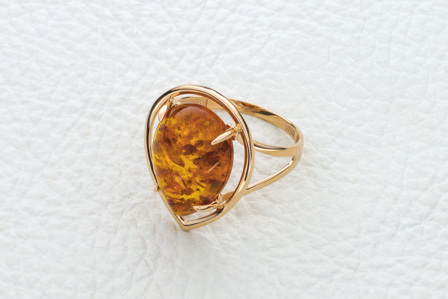 Мастера компании NEWGOLD, приложив всё свое мастерство и искусство, создали для Вас на нашем собственном производстве Кольцо из красного золота с янтарём.