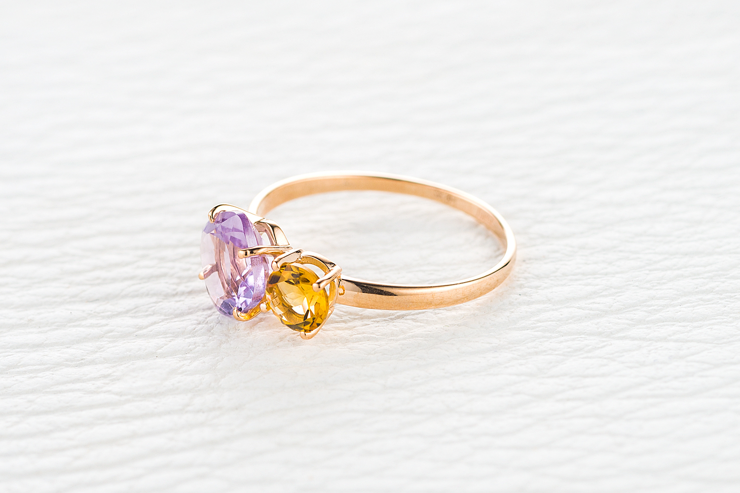 Мастера компании NEWGOLD, приложив всё свое мастерство и искусство, создали для Вас на нашем собственном производстве Кольцо из красного золота с аметистом и цитрином.