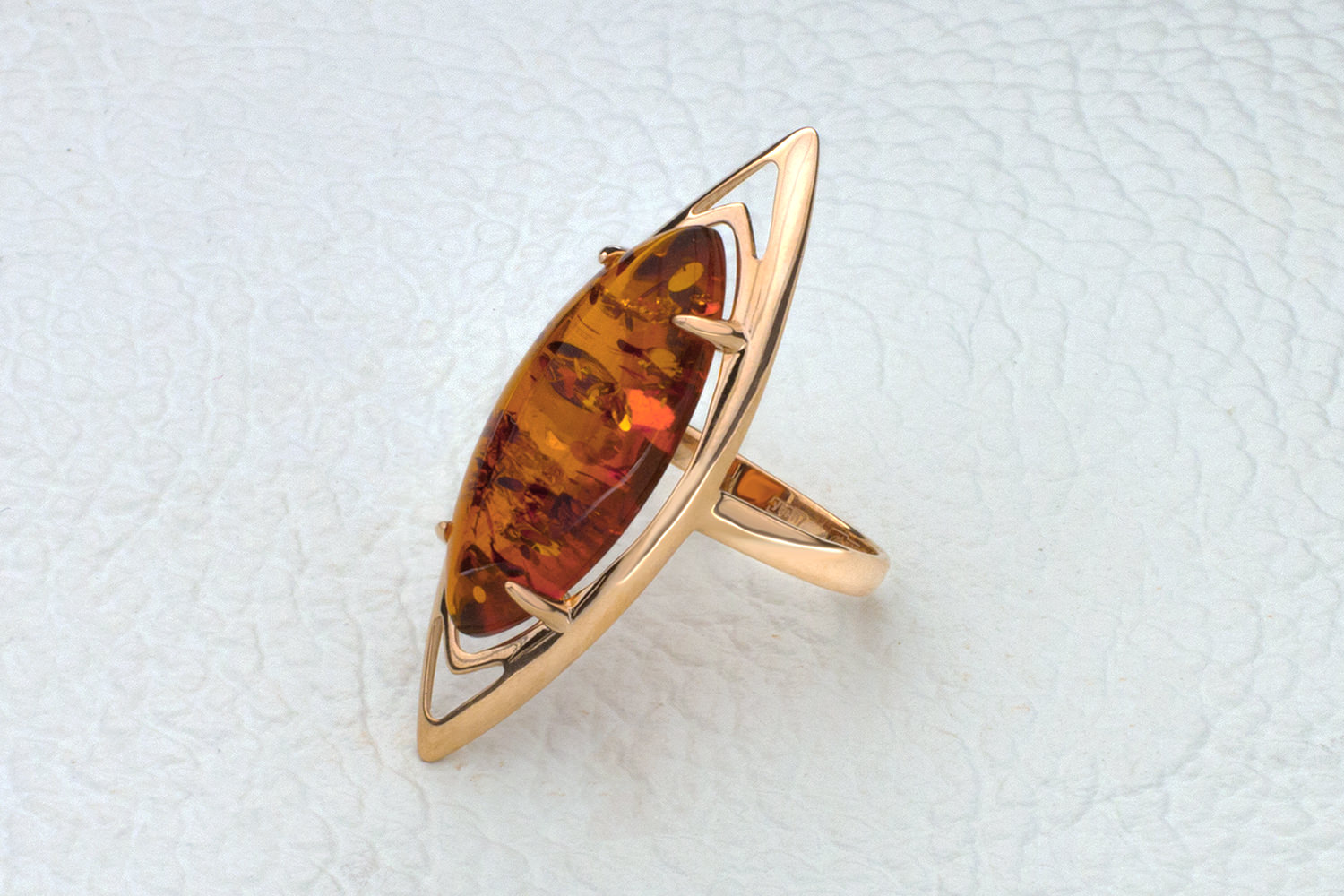 Мастера компании NEWGOLD, приложив всё свое мастерство и искусство, создали для Вас на нашем собственном производстве Кольцо из красного золота с янтарём.