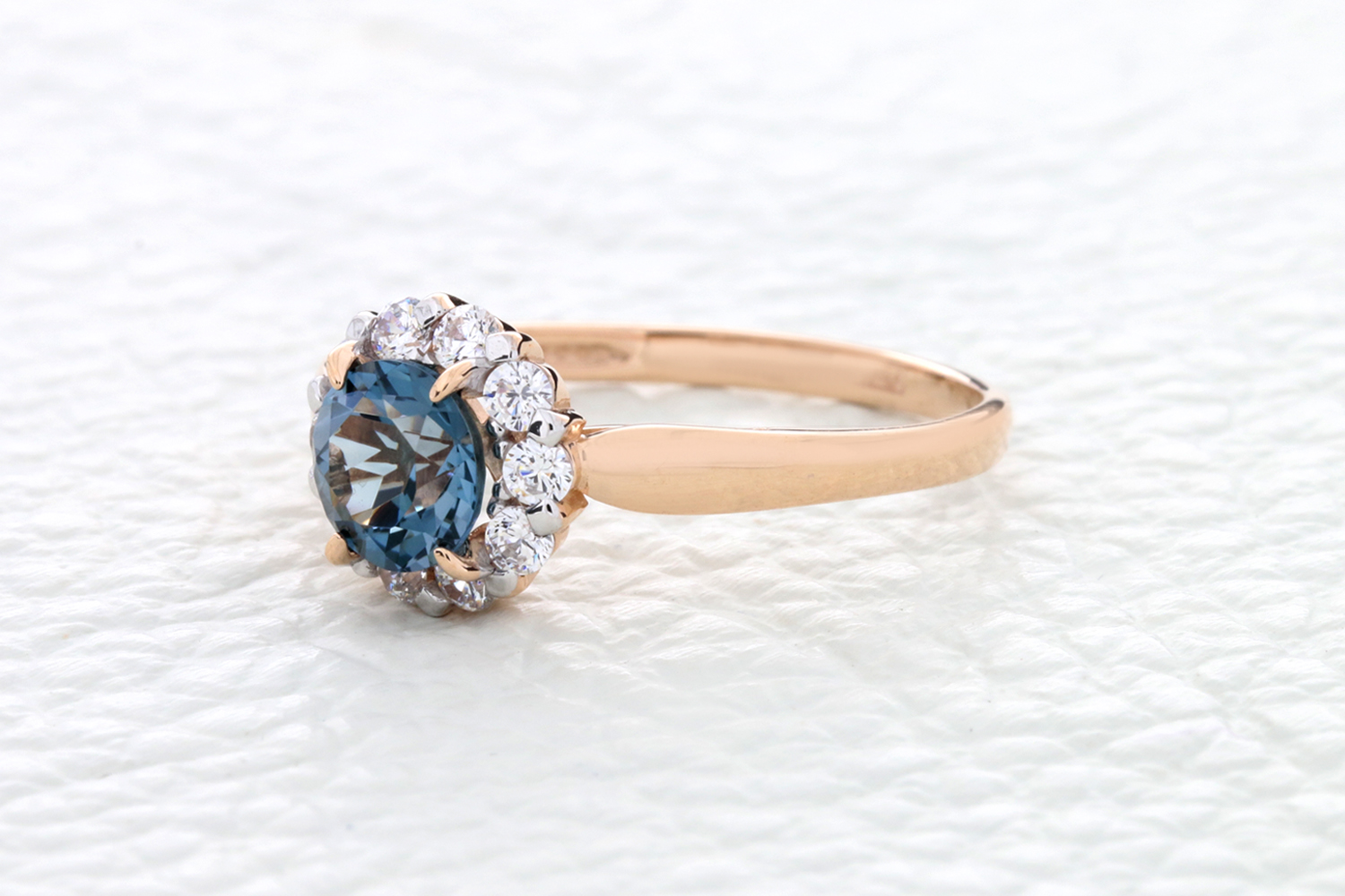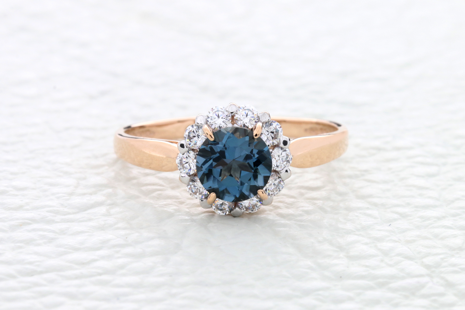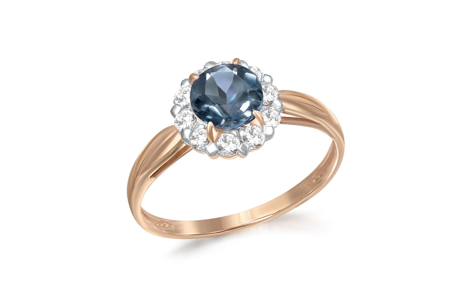 Мастера компании NEWGOLD, приложив всё свое мастерство и искусство, создали для Вас на нашем собственном производстве Кольцо из красного золота с топазом лондон и 10 фианитами.