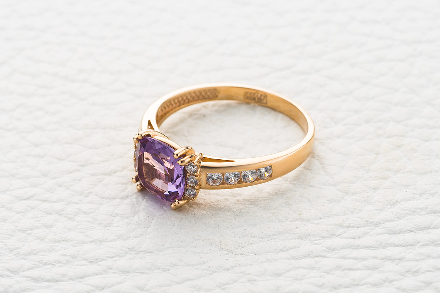 Мастера компании NEWGOLD, приложив всё свое мастерство и искусство, создали для Вас на нашем собственном производстве Кольцо из красного золота с аметистом и 14 фианитами.