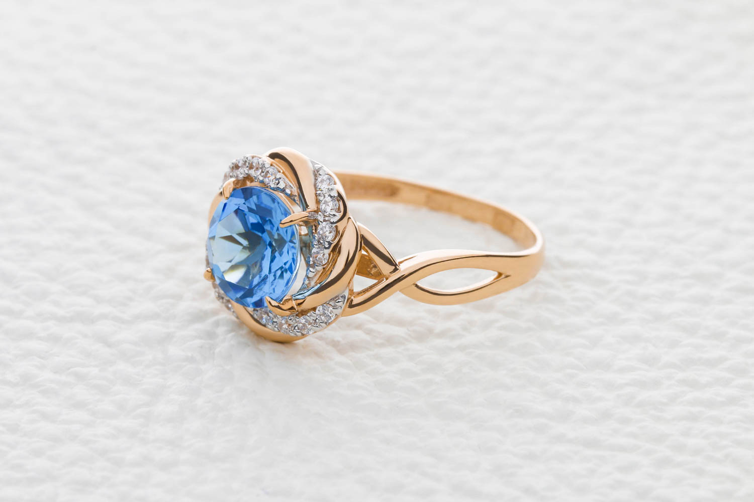 Мастера компании NEWGOLD, приложив всё свое мастерство и искусство, создали для Вас на нашем собственном производстве Кольцо из красного золота с топазом swiss и 16 фианитами.