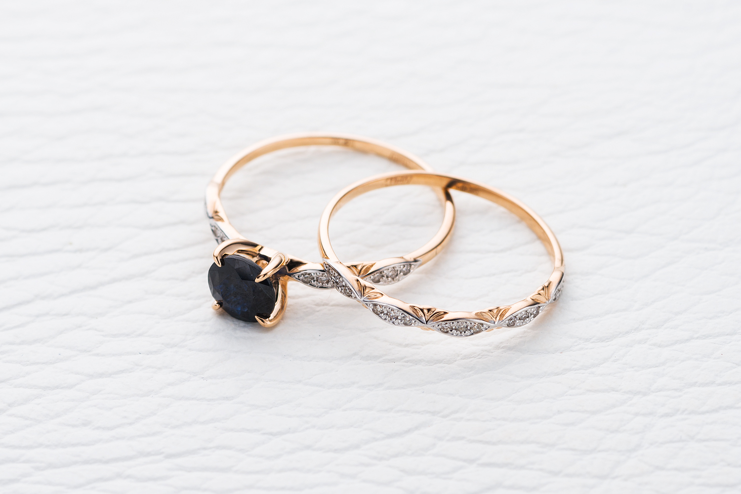 Сапфир натуральный, количество 1 шт., огранка круг, размер 6 мм, цвет 2, чистота 2, вес 0,95 карат. ; Бриллиант, количество 27 шт., огранка Кр-57, размер 1 мм, цвет 4, чистота 5, вес 0,1 карат.