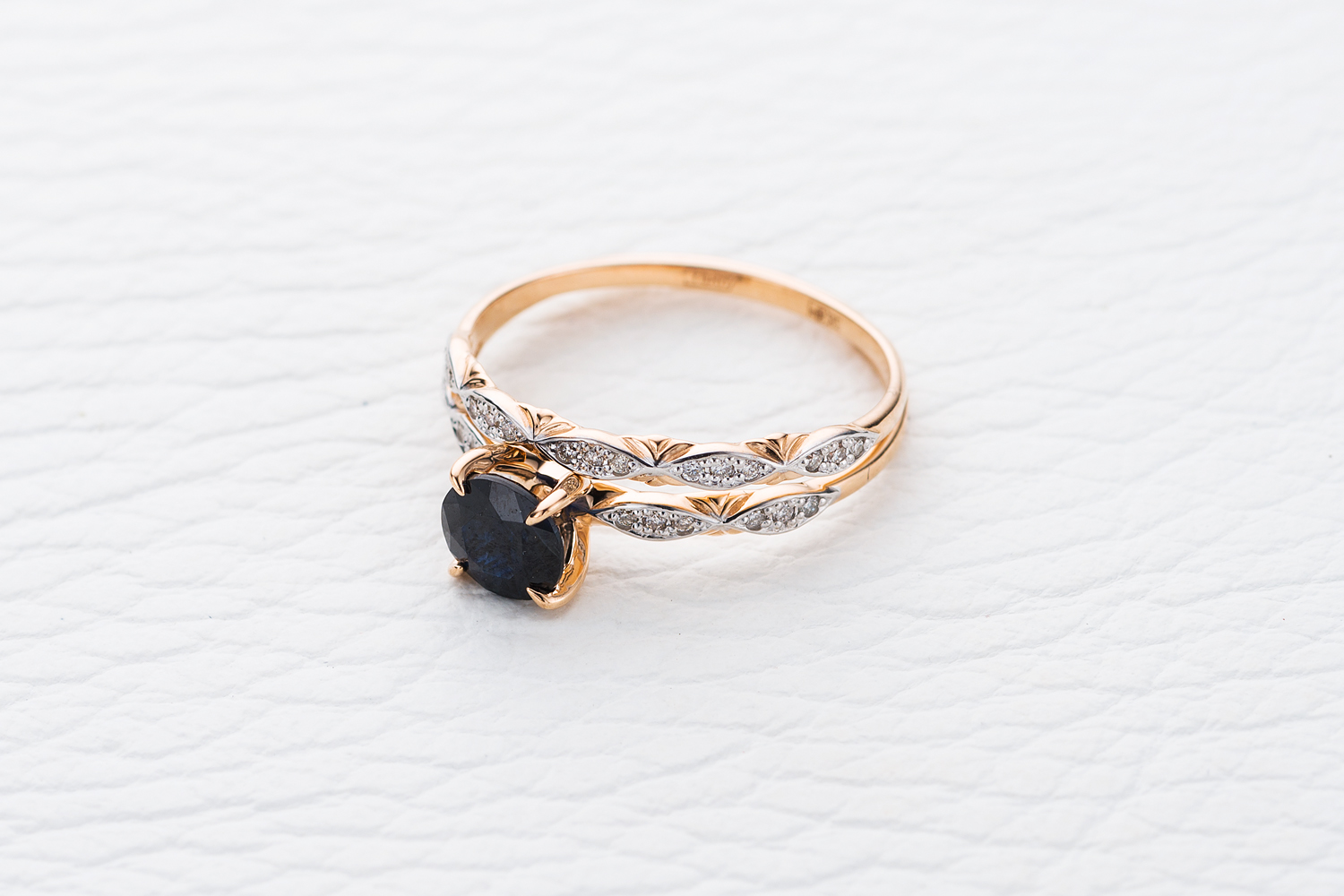 Мастера компании NEWGOLD, приложив всё свое мастерство и искусство, создали для Вас на нашем собственном производстве Кольцо из красного золота с сапфиром и 27 бриллиантами.