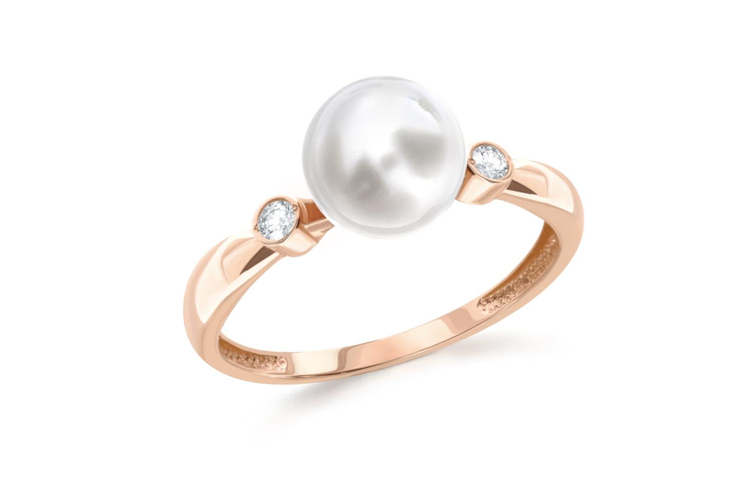 Мастера компании NEWGOLD, приложив всё свое мастерство и искусство, создали для Вас на нашем собственном производстве Кольцо из красного золота с жемчугом и 2 фианитами.