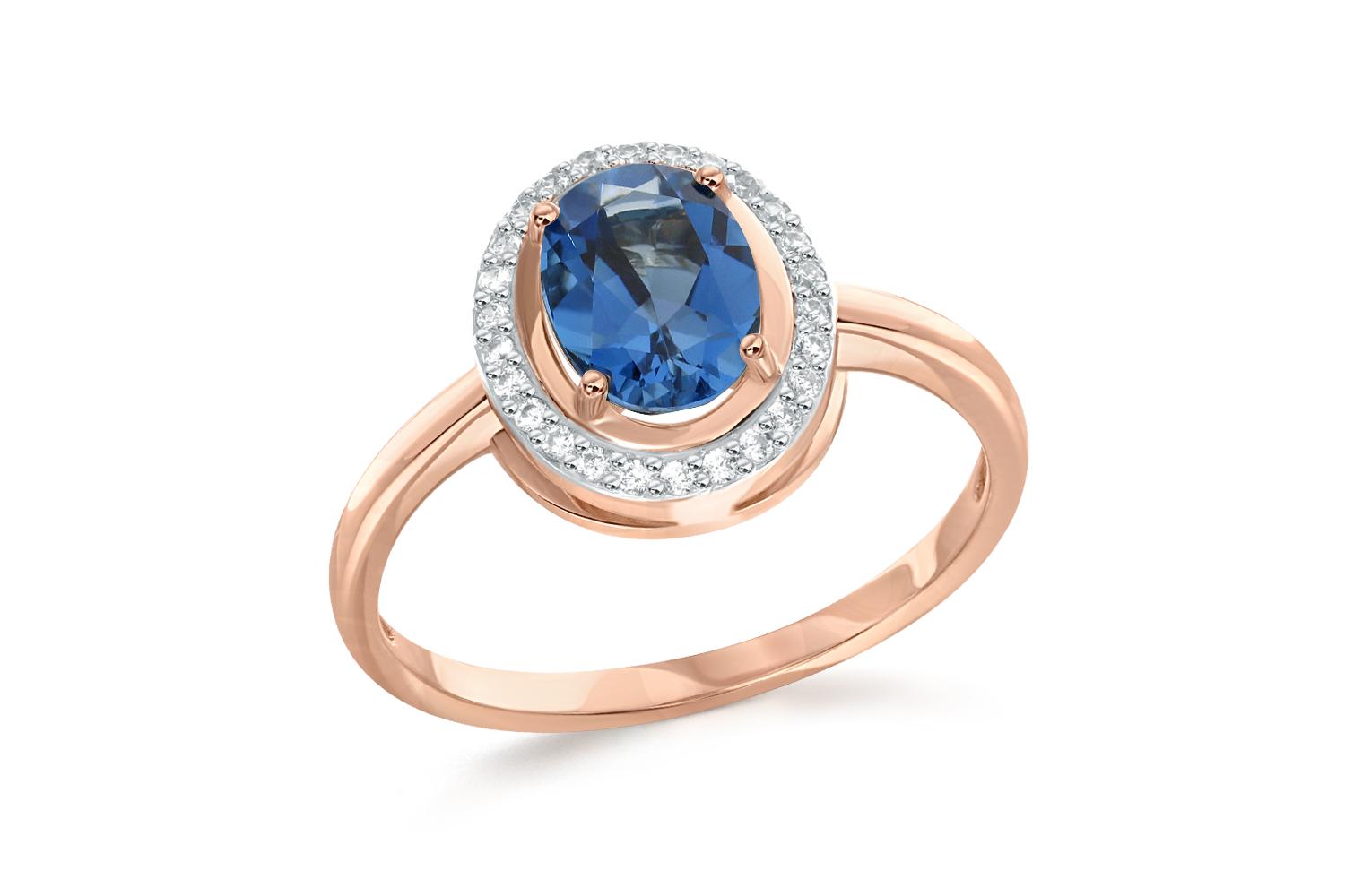Закажите Кольцо из красного золота с топазом лондон и 26 фианитами с получением в Москве через курьерскую службу доставки напрямую с нашего производственного склада завода NEWGOLD!