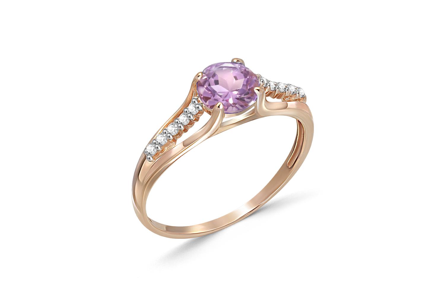 Мастера компании NEWGOLD, приложив всё свое мастерство и искусство, создали для Вас на нашем собственном производстве Кольцо из красного золота с аметистом и 10 фианитами.