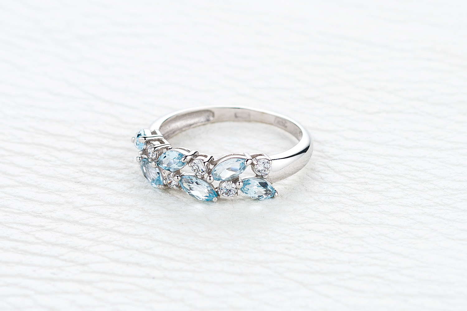 Топаз Sky натуральный, количество 6 шт., огранка маркиз, размер 5ˣ2,5 ; Фианит б/цв, количество 6 шт., огранка круг, размер 2 мм
