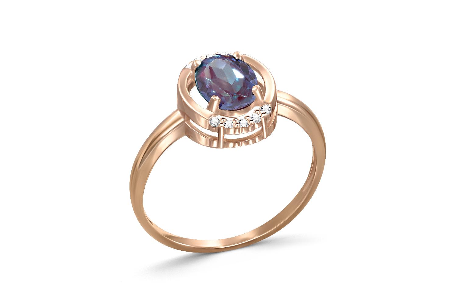Мастера компании NEWGOLD, приложив всё свое мастерство и искусство, создали для Вас на нашем собственном производстве Кольцо из красного золота с александритом и 10 фианитами.