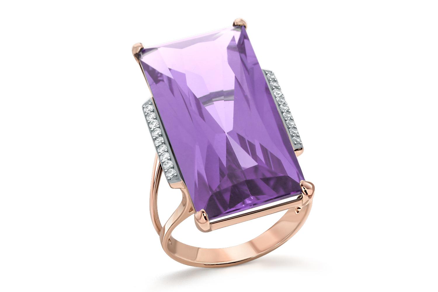 Мастера компании NEWGOLD, приложив всё свое мастерство и искусство, создали для Вас на нашем собственном производстве Кольцо из красного золота с аметистом и 18 фианитами.