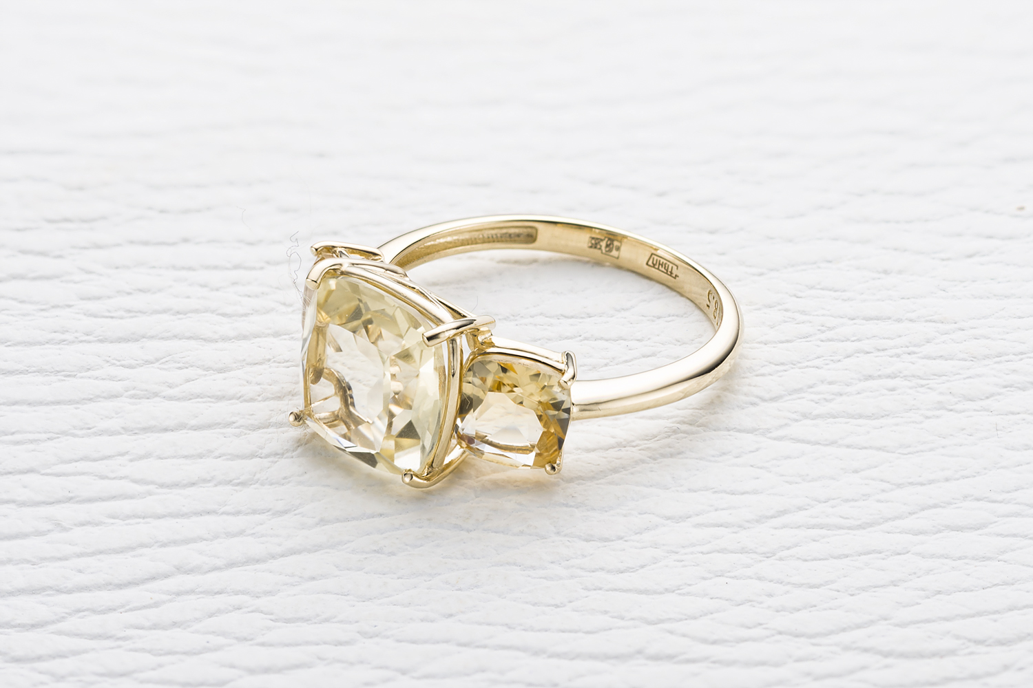 Мастера компании NEWGOLD, приложив всё свое мастерство и искусство, создали для Вас на нашем собственном производстве Кольцо из жёлтого золота с 3 цитринами.