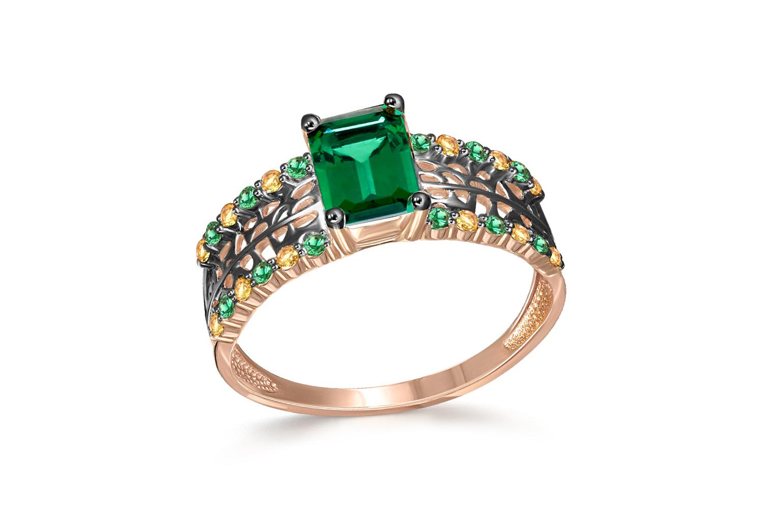 Мастера компании NEWGOLD, приложив всё свое мастерство и искусство, создали для Вас на нашем собственном производстве Кольцо из красного золота с изумрудом и 24 фианитами.
