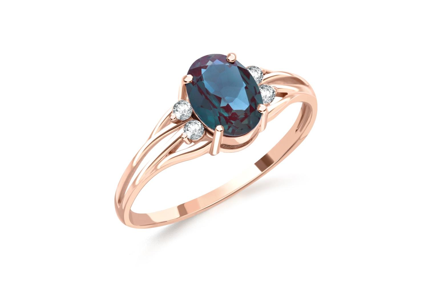 Мастера компании NEWGOLD, приложив всё свое мастерство и искусство, создали для Вас на нашем собственном производстве Кольцо из красного золота с александритом и 4 фианитами.