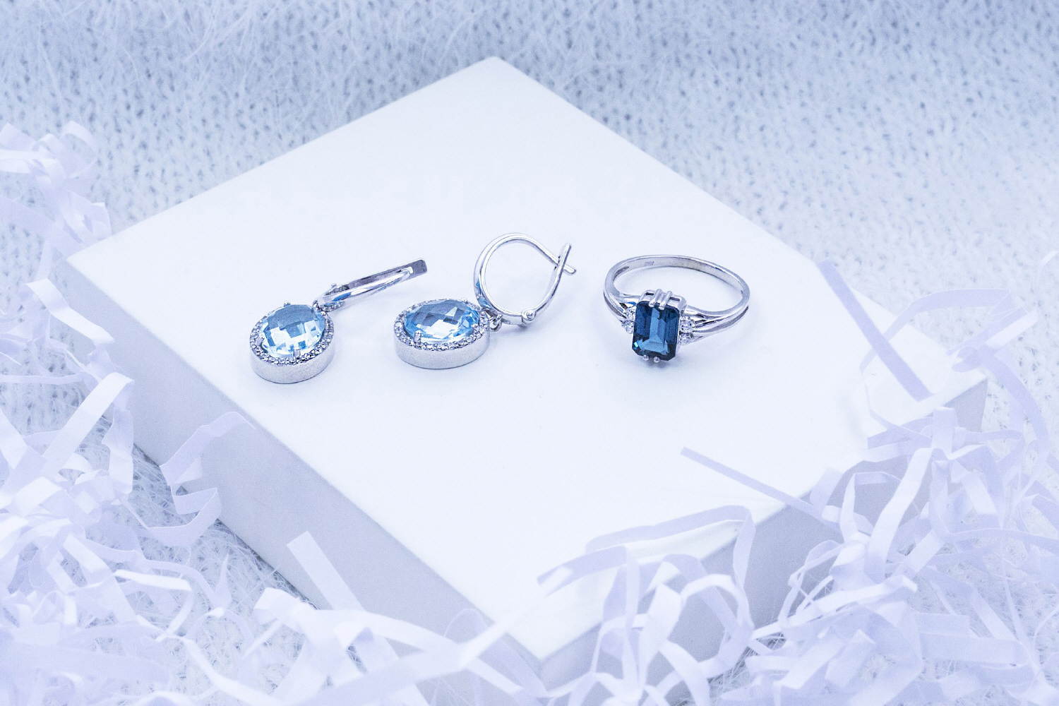 Мастера компании NEWGOLD, приложив всё свое мастерство и искусство, создали для Вас на нашем собственном производстве Кольцо из белого золота с топазом лондон и 4 фианитами.