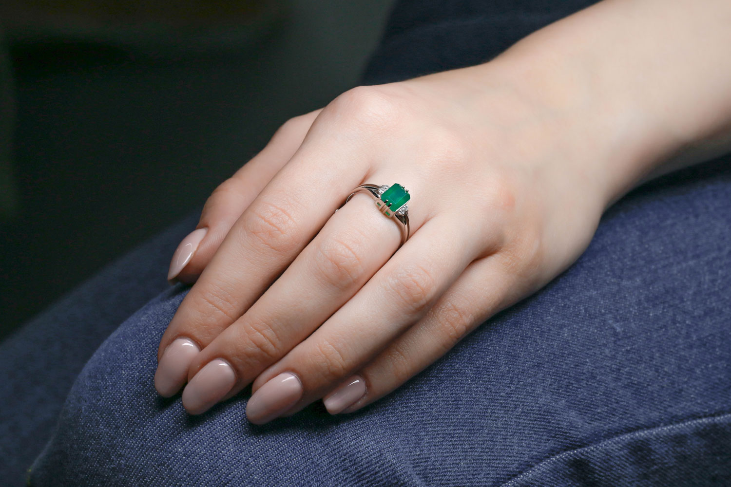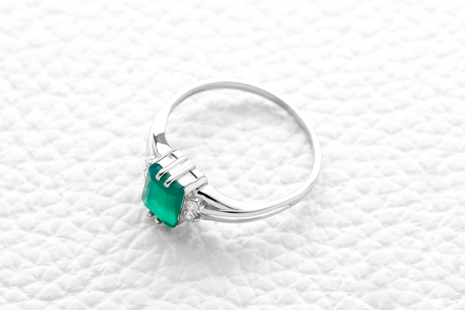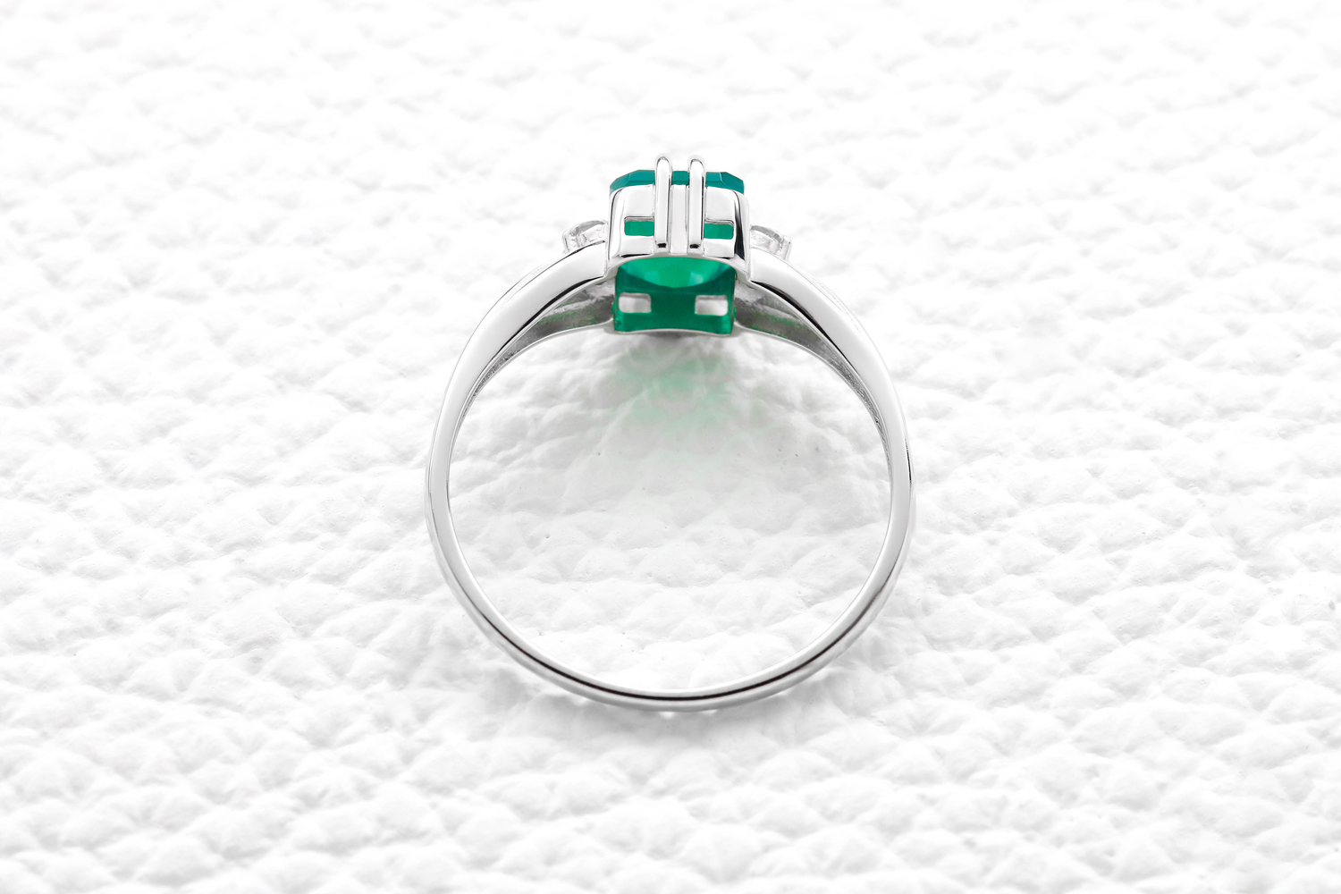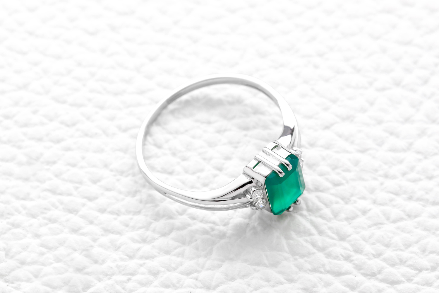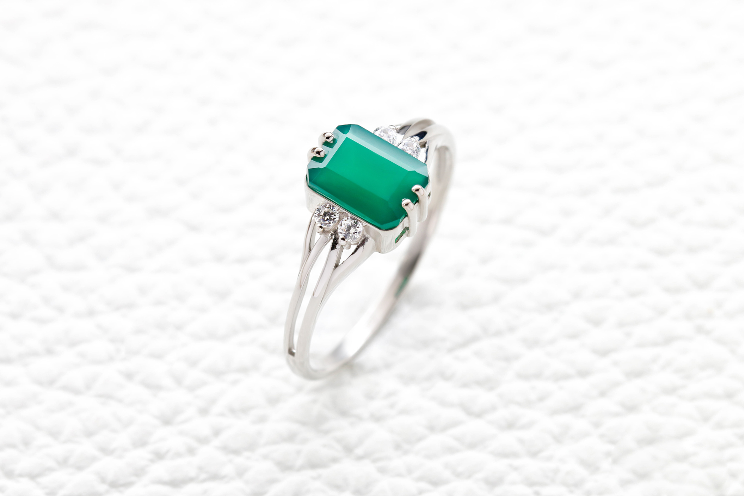 Агат зеленый, количество 1 шт., огранка октагон, размер 8ˣ6 ; Фианит б/цв, количество 4 шт., огранка круг, размер 1,75 мм