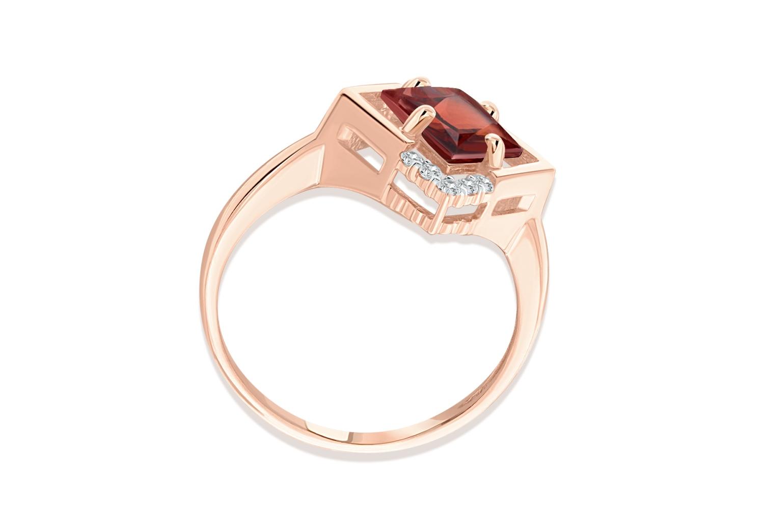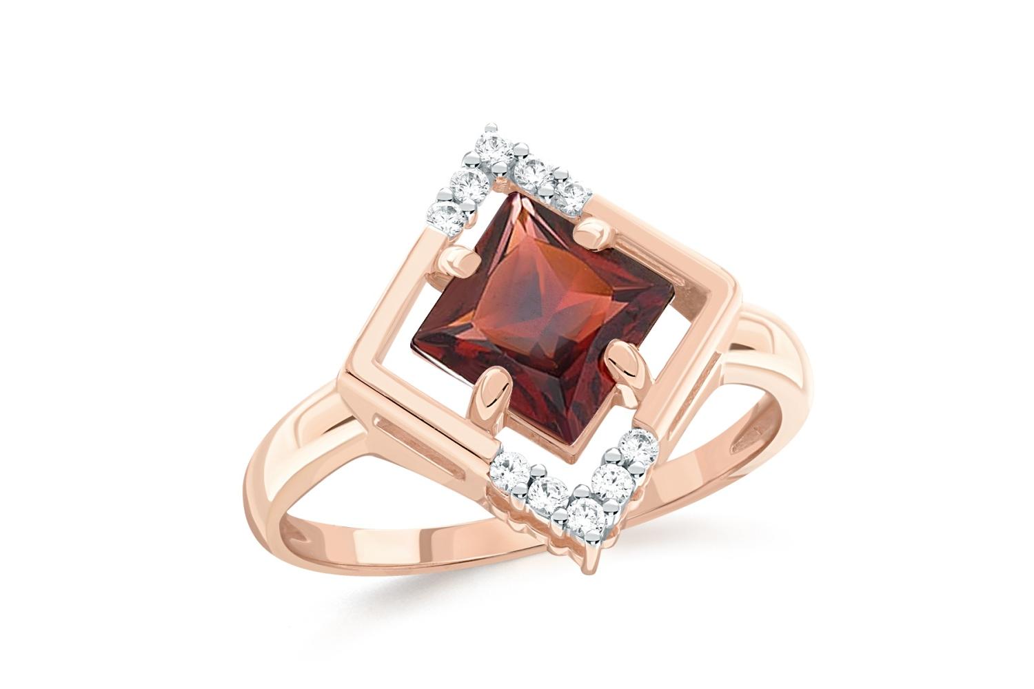 Мастера компании NEWGOLD, приложив всё свое мастерство и искусство, создали для Вас на нашем собственном производстве Кольцо из красного золота с гранатом и 10 фианитами.