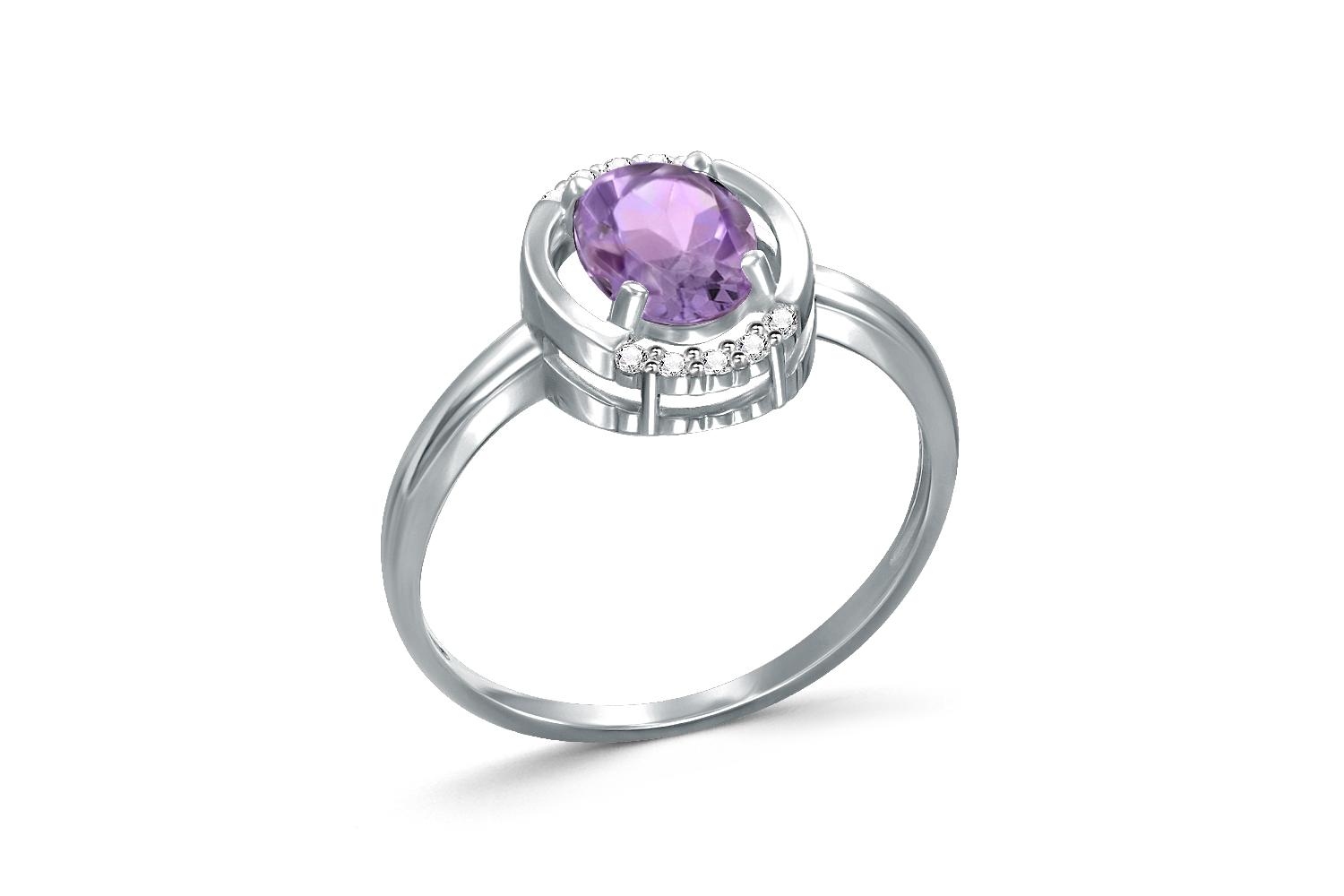 Мастера компании NEWGOLD, приложив всё свое мастерство и искусство, создали для Вас на нашем собственном производстве Кольцо из белого золота с аметистом и 10 фианитами.