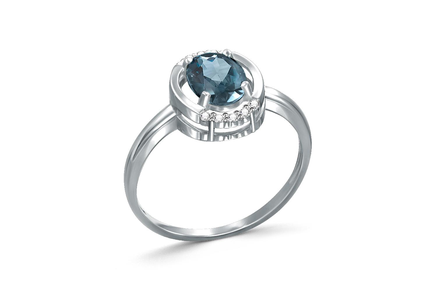 Мастера компании NEWGOLD, приложив всё свое мастерство и искусство, создали для Вас на нашем собственном производстве Кольцо из белого золота с топазом лондон и 10 фианитами.