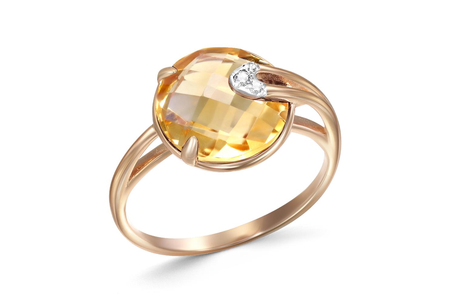 Мастера компании NEWGOLD, приложив всё свое мастерство и искусство, создали для Вас на нашем собственном производстве Кольцо из красного золота с цитрином и 3 фианитами.