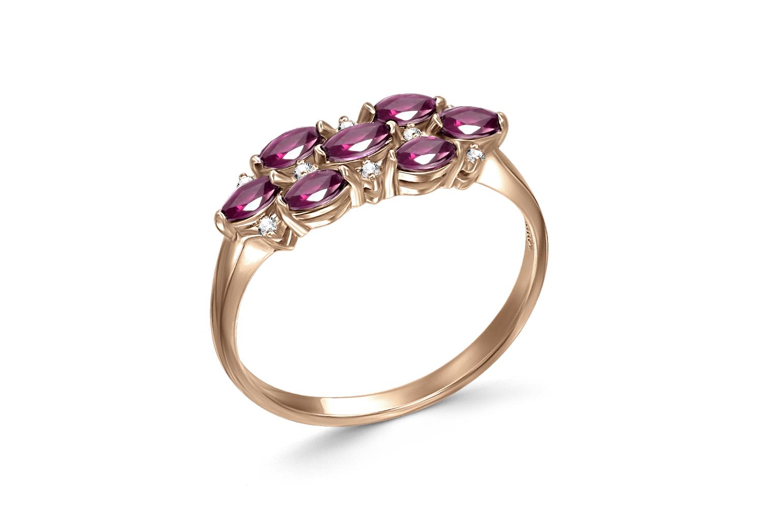 Мастера компании NEWGOLD, приложив всё свое мастерство и искусство, создали для Вас на нашем собственном производстве Кольцо из красного золота с 7 рубинами и 8 бриллиантами.
