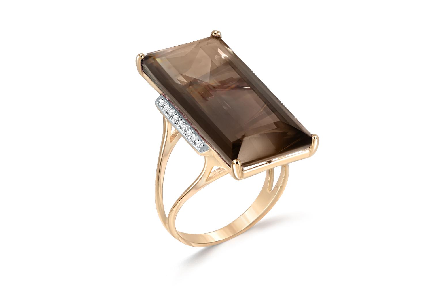Закажите Кольцо из жёлтого золота с раухтопазом и 18 фианитами с получением в Москве через курьерскую службу доставки напрямую с нашего производственного склада завода NEWGOLD!