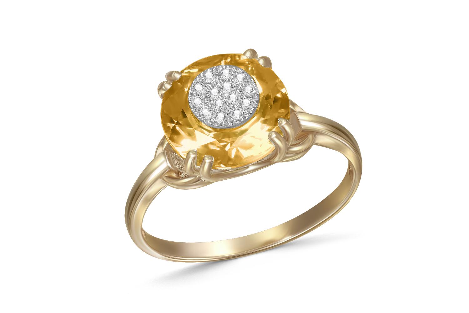 Мастера компании NEWGOLD, приложив всё свое мастерство и искусство, создали для Вас на нашем собственном производстве Кольцо из жёлтого золота с цитрином и 14 бриллиантами.