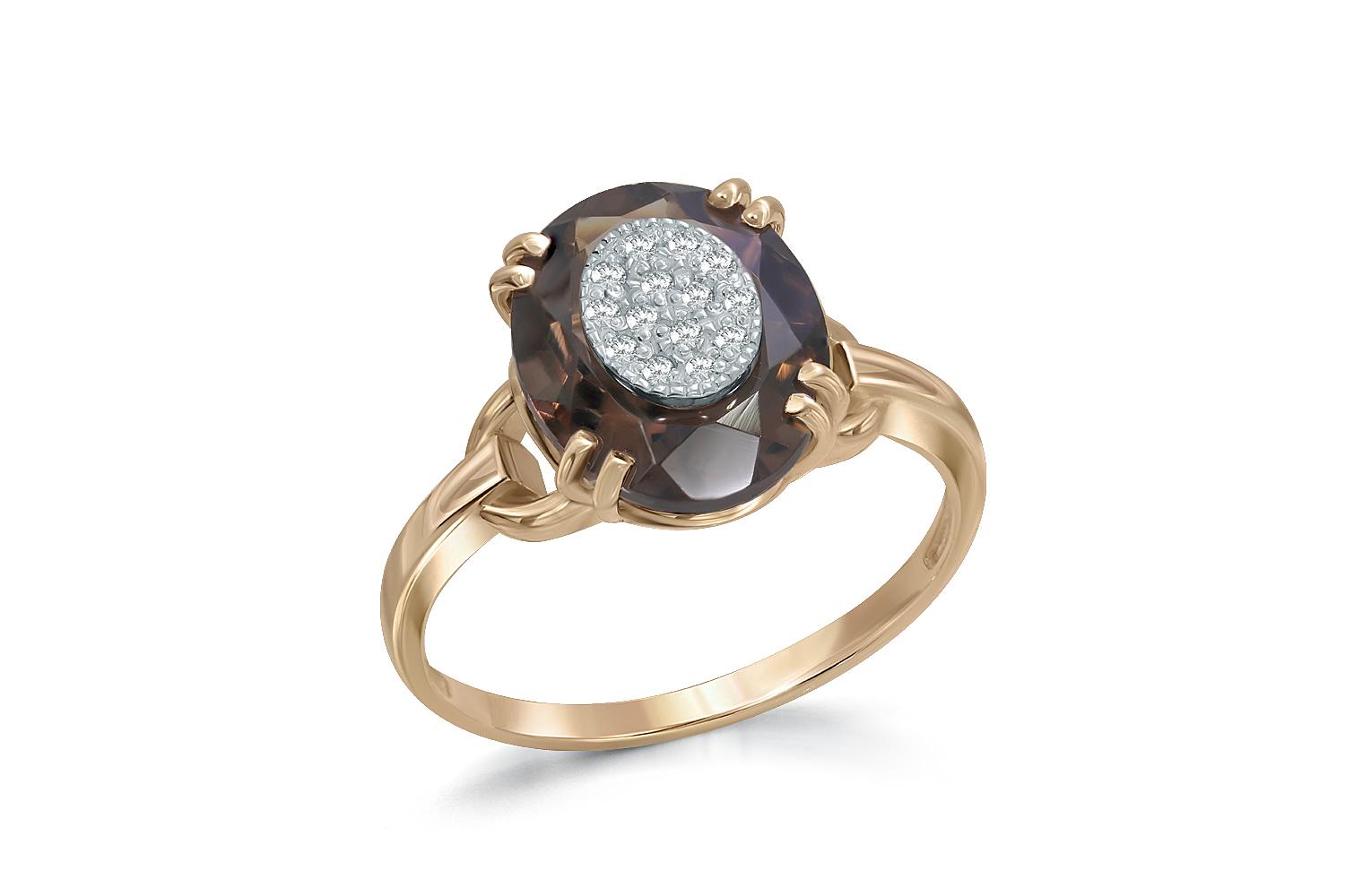 Мастера компании NEWGOLD, приложив всё свое мастерство и искусство, создали для Вас на нашем собственном производстве Кольцо из жёлтого золота с раухтопазом и 14 бриллиантами.