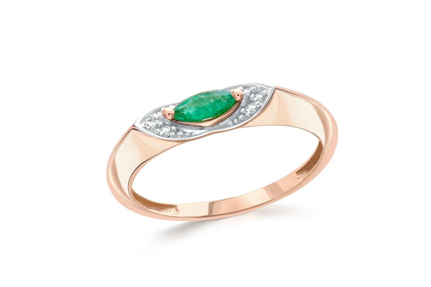 Мастера компании NEWGOLD, приложив всё свое мастерство и искусство, создали для Вас на нашем собственном производстве Кольцо из красного золота с изумрудом и 6 бриллиантами.