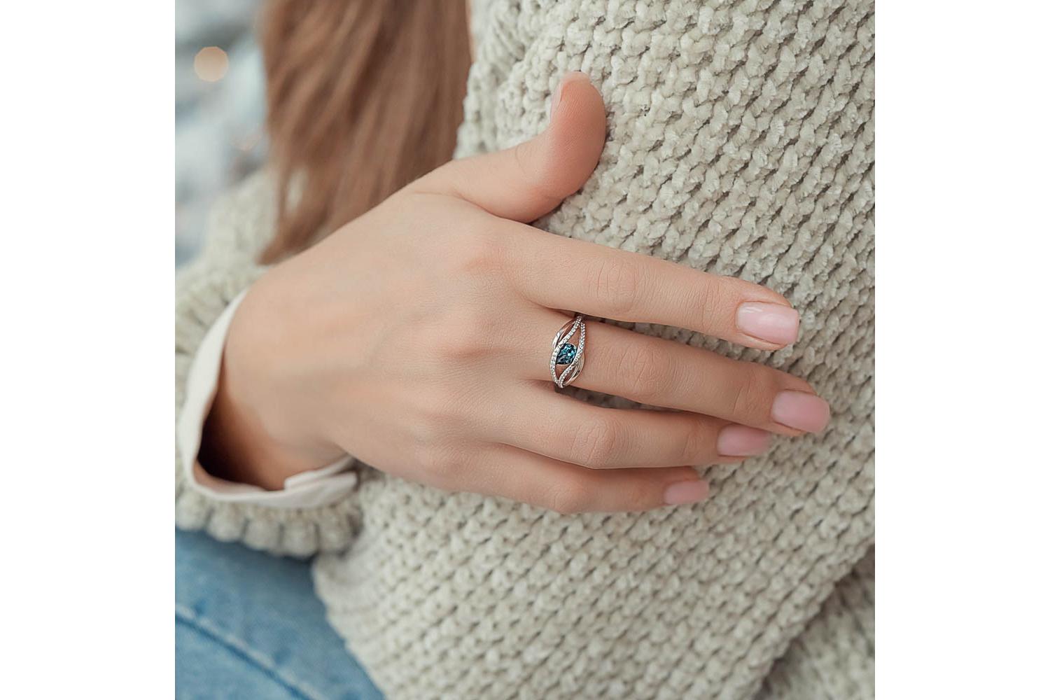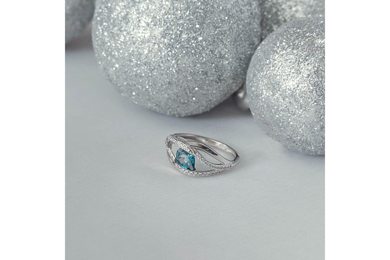Мастера компании NEWGOLD, приложив всё свое мастерство и искусство, создали для Вас на нашем собственном производстве Кольцо из белого золота с топазом лондон и 42 фианитами.