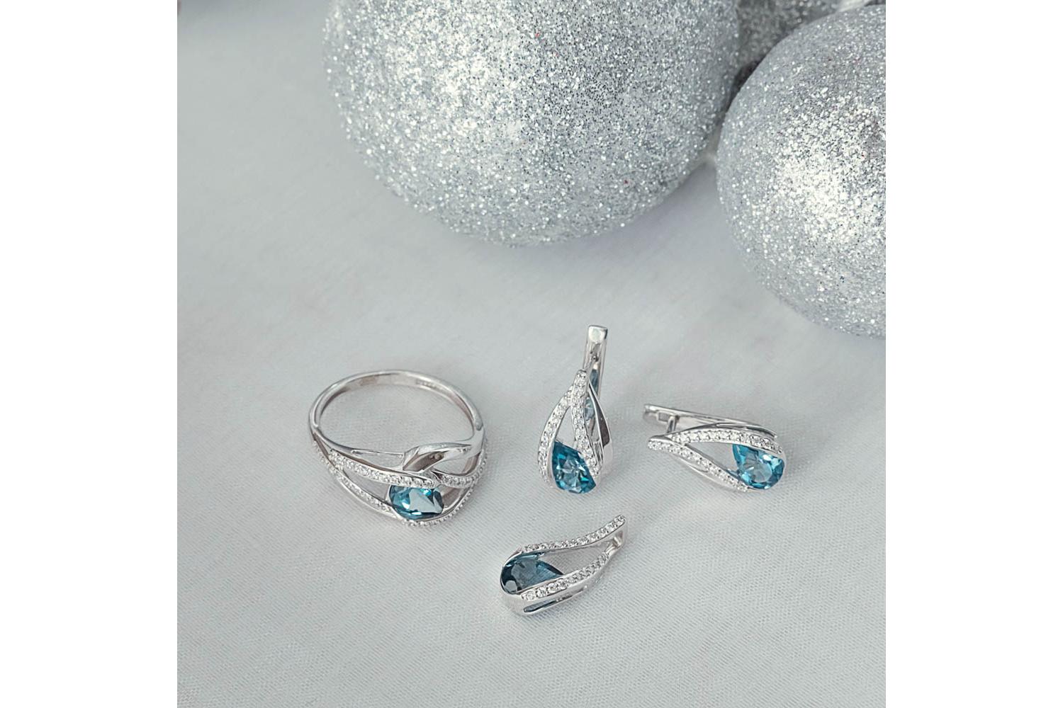 Топаз лондон натуральный, количество 1 шт., огранка груша, размер 7ˣ5 ; Фианит б/цв, количество 42 шт., огранка круг, размер 1 мм