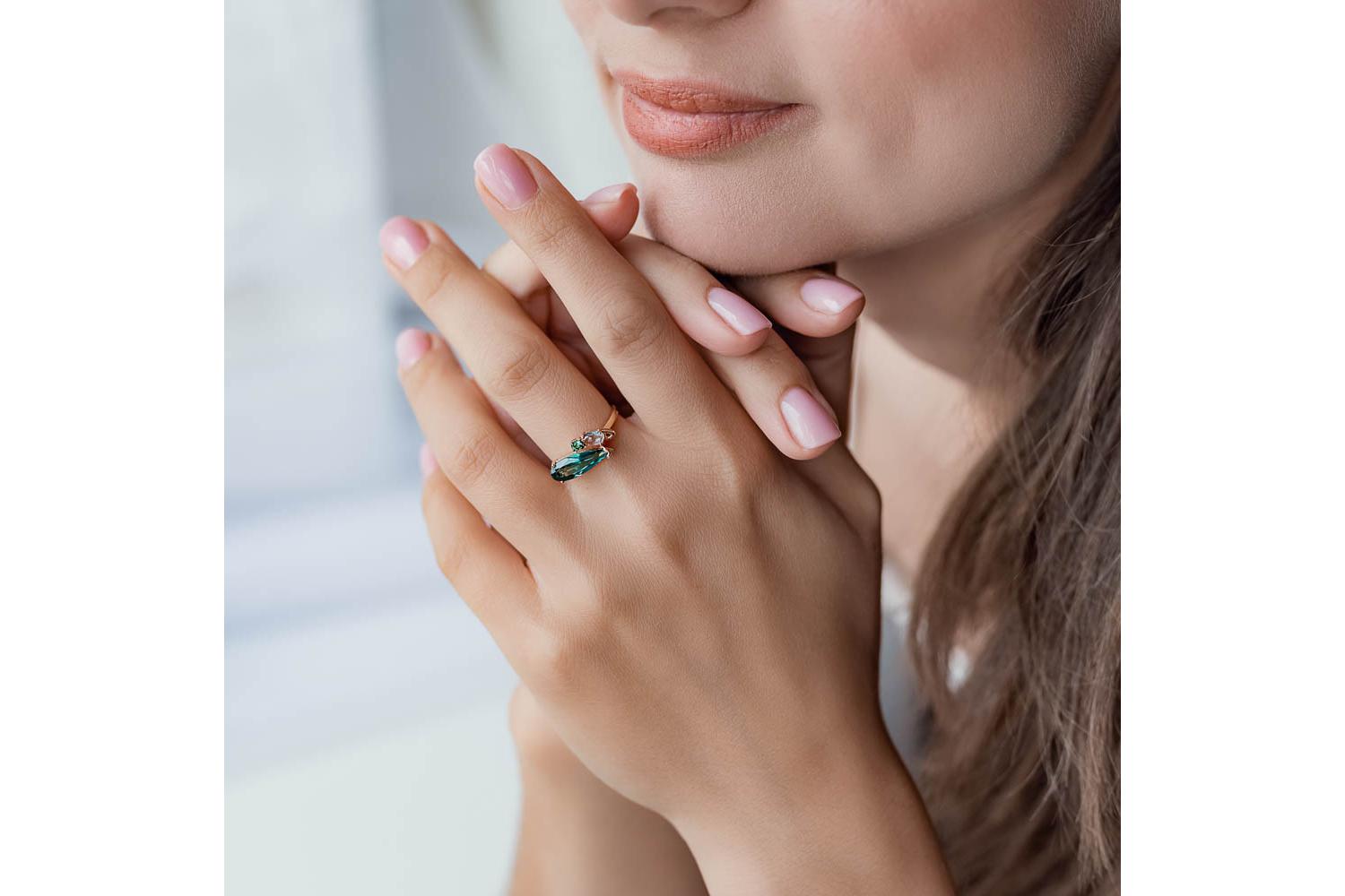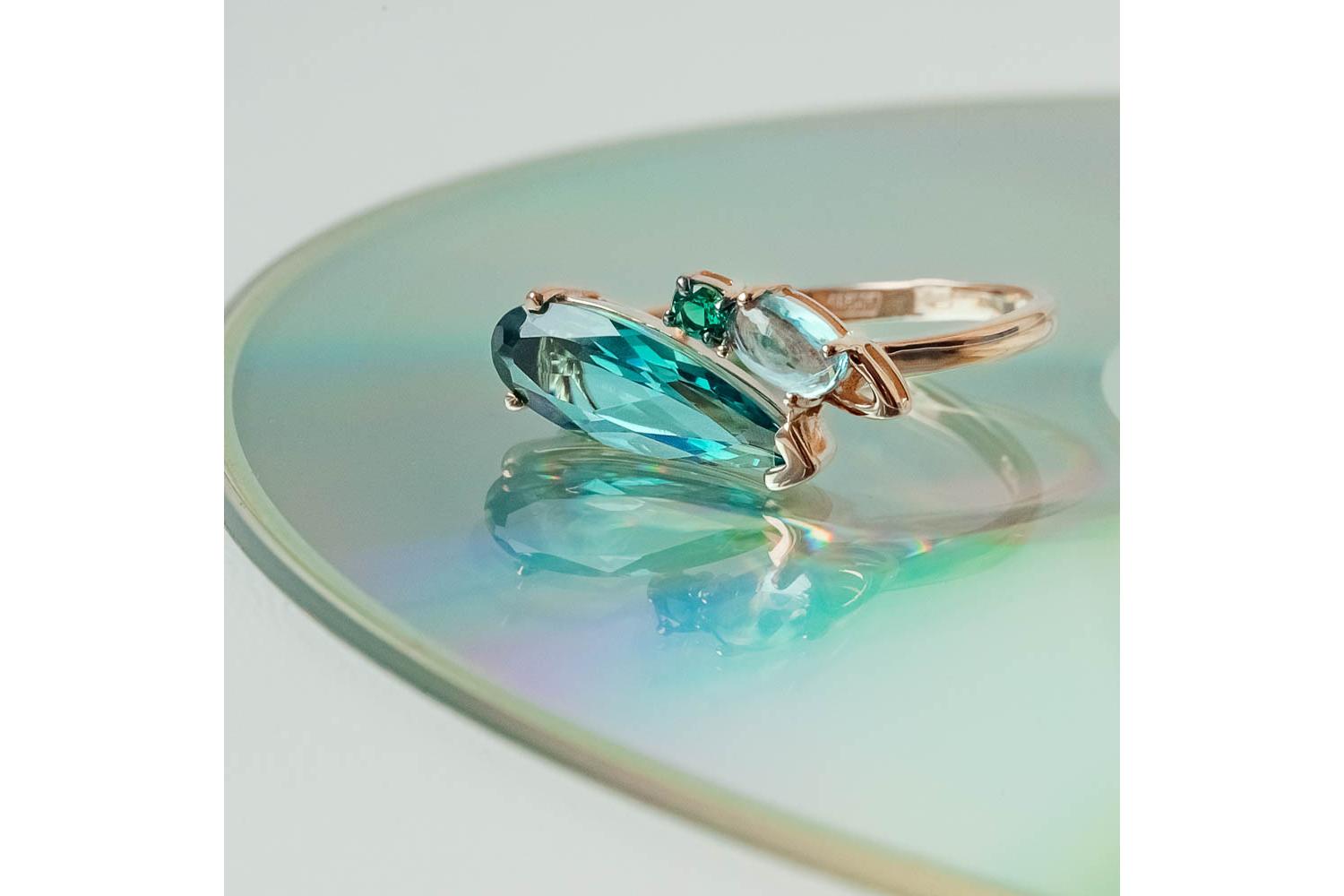 Ситалл Парайба, количество 1 шт., огранка груша, размер 14ˣ5 ; Ситалл Парайба, количество 1 шт., огранка овал-кабошон, размер 5ˣ3 ; Фианит зеленый, количество 1 шт., огранка круг, размер 2,5 мм