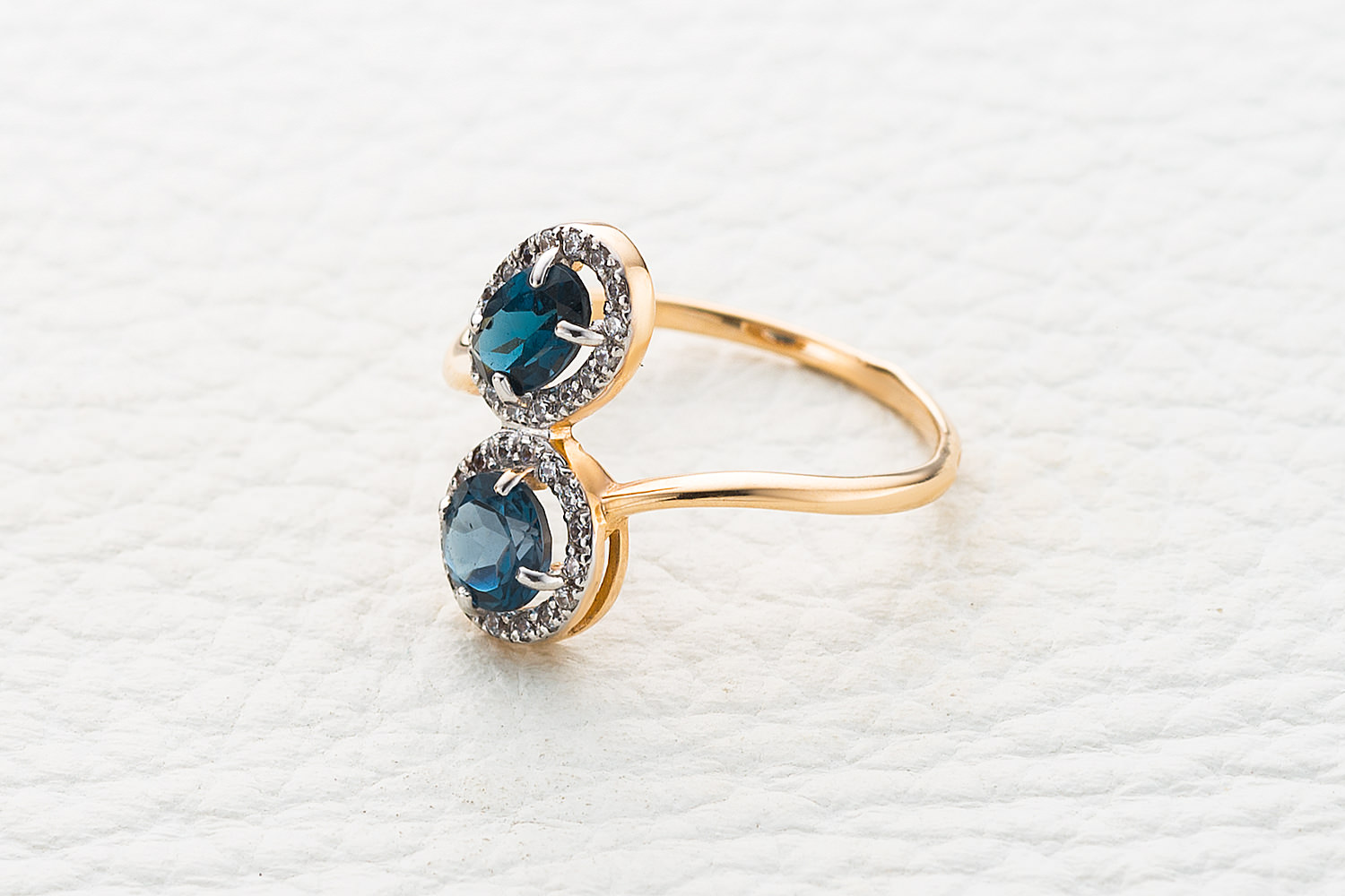 Мастера компании NEWGOLD, приложив всё свое мастерство и искусство, создали для Вас на нашем собственном производстве Кольцо из красного золота с 2 топазами лондон и 32 фианитами.