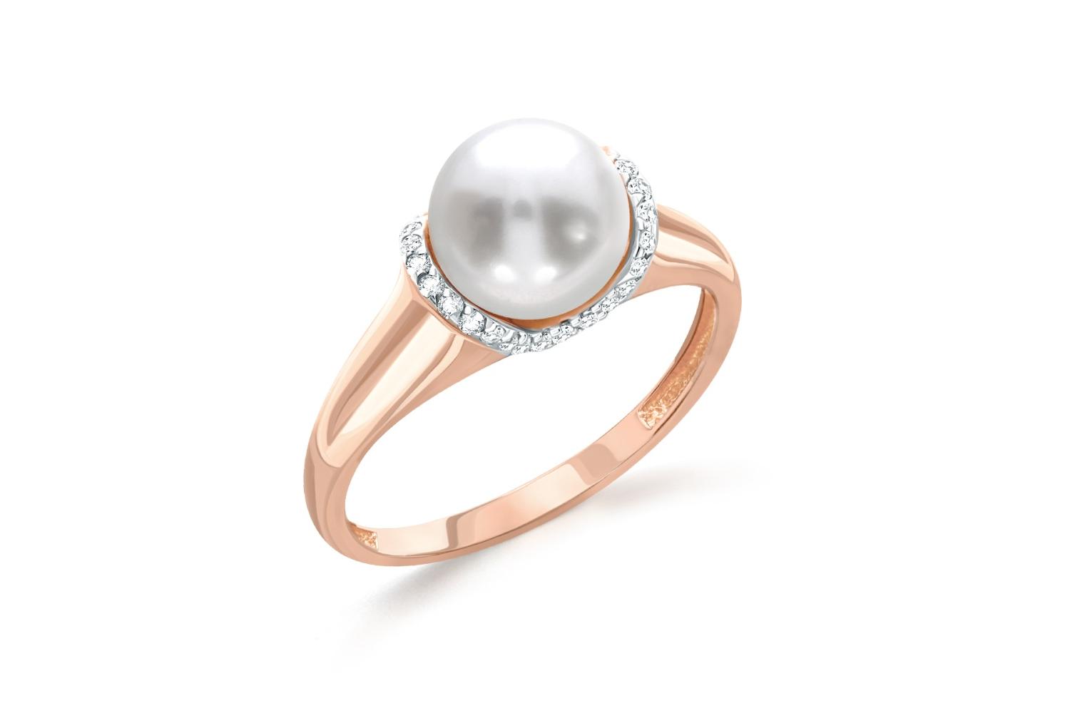 Мастера компании NEWGOLD, приложив всё свое мастерство и искусство, создали для Вас на нашем собственном производстве Кольцо из красного золота с жемчугом и 30 фианитами.