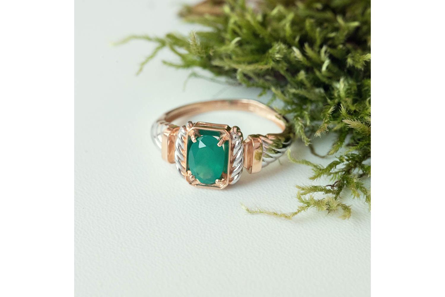 Мастера компании NEWGOLD, приложив всё свое мастерство и искусство, создали для Вас на нашем собственном производстве Кольцо из красного золота с хризопразом.