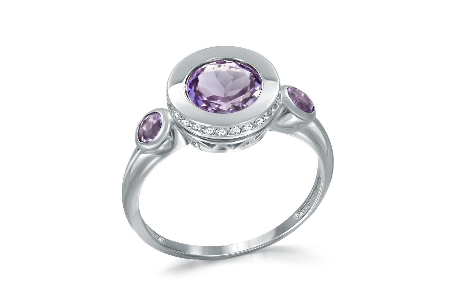 Мастера компании NEWGOLD, приложив всё свое мастерство и искусство, создали для Вас на нашем собственном производстве Кольцо из белого золота с 3 аметистами и 26 фианитами.