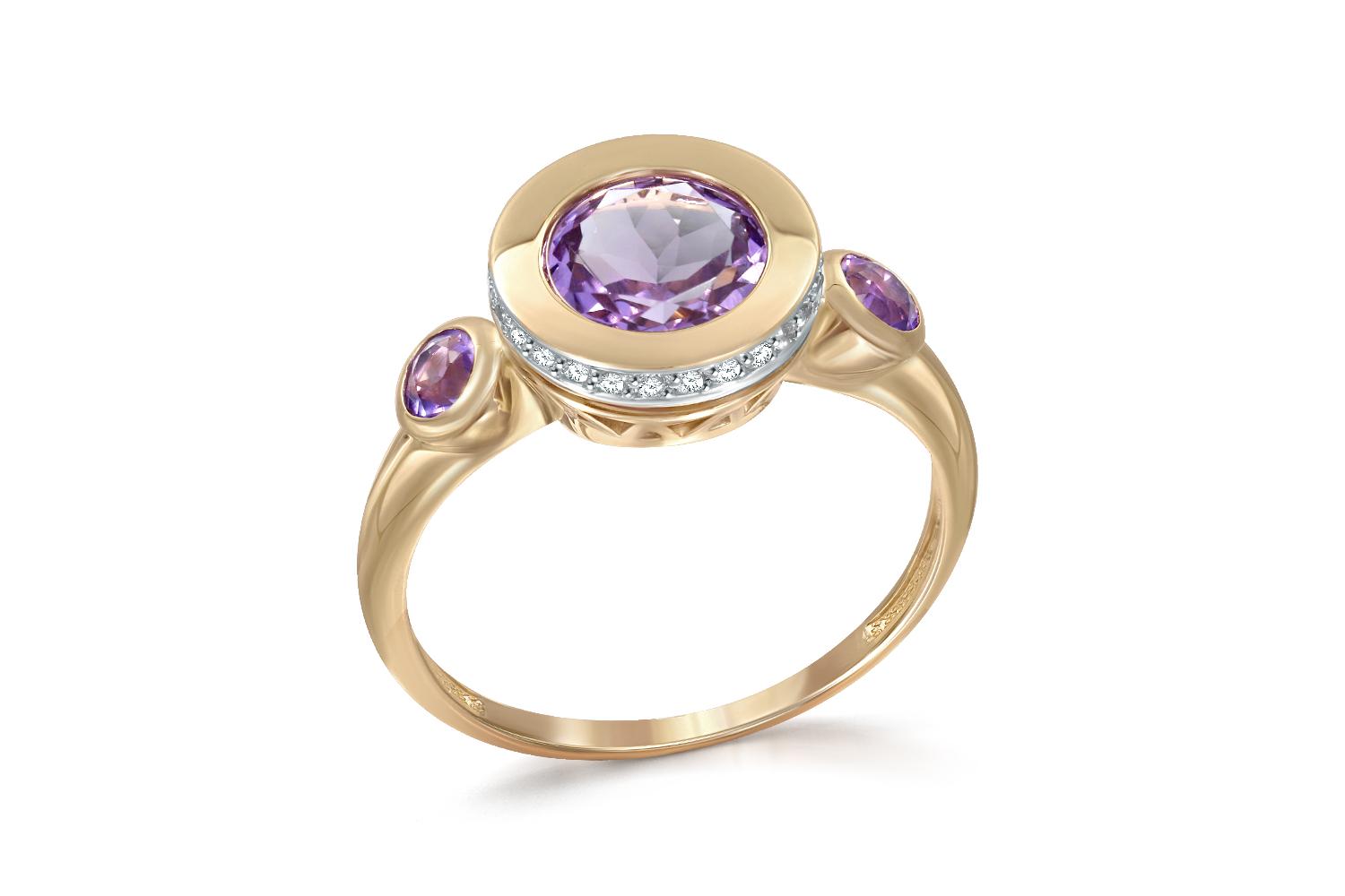 Мастера компании NEWGOLD, приложив всё свое мастерство и искусство, создали для Вас на нашем собственном производстве Кольцо из жёлтого золота с 3 аметистами и 26 фианитами.