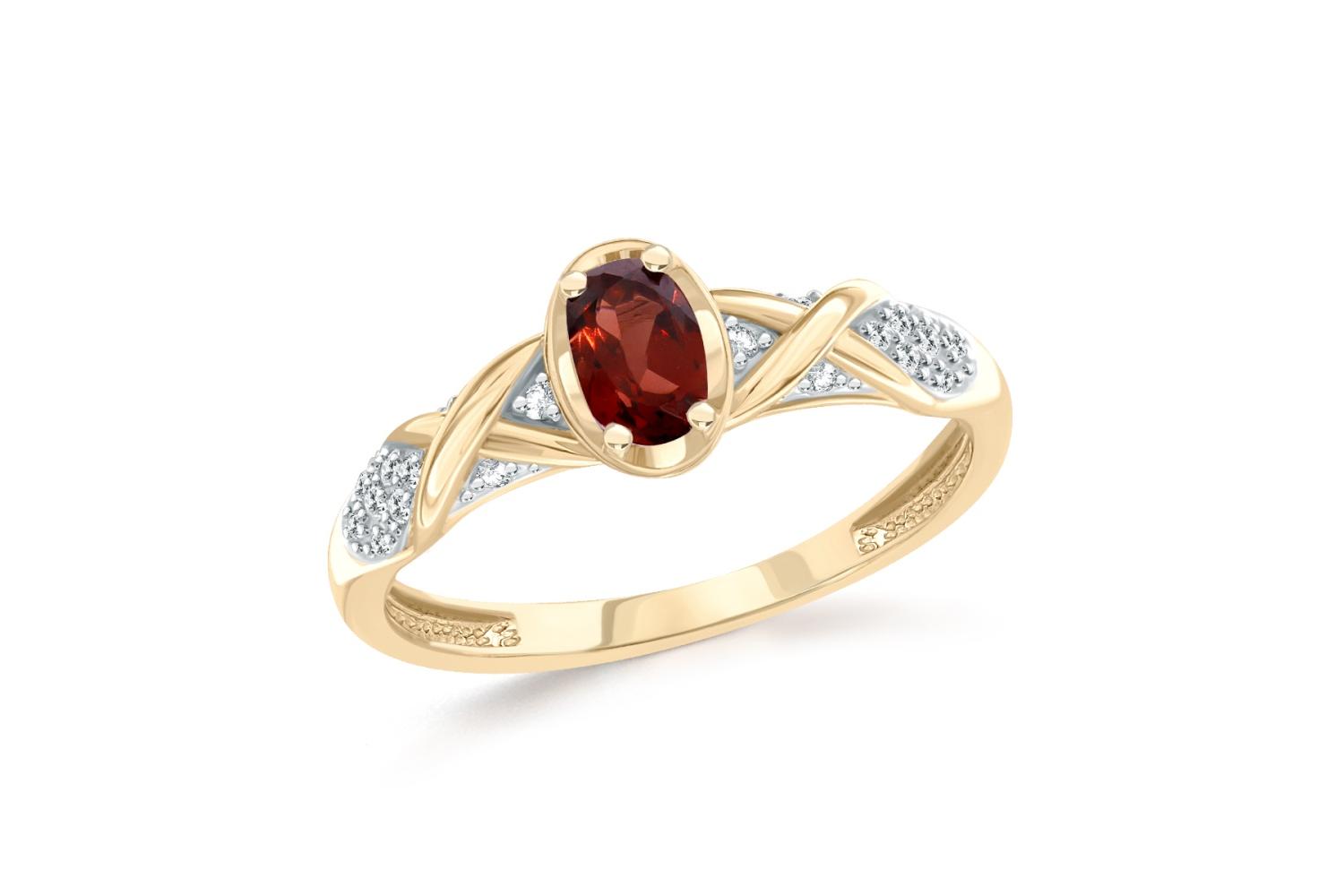 Мастера компании NEWGOLD, приложив всё свое мастерство и искусство, создали для Вас на нашем собственном производстве Кольцо из жёлтого золота с гранатом и 20 фианитами.