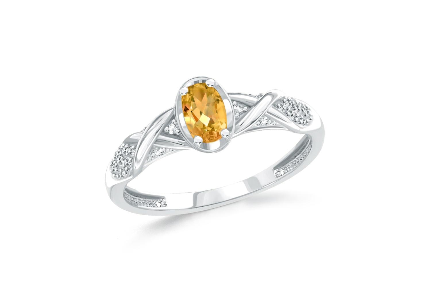 Цитрин натуральный, количество 1 шт., огранка овал, размер 6ˣ4 ; Фианит б/цв, количество 20 шт., огранка круг, размер 1 мм