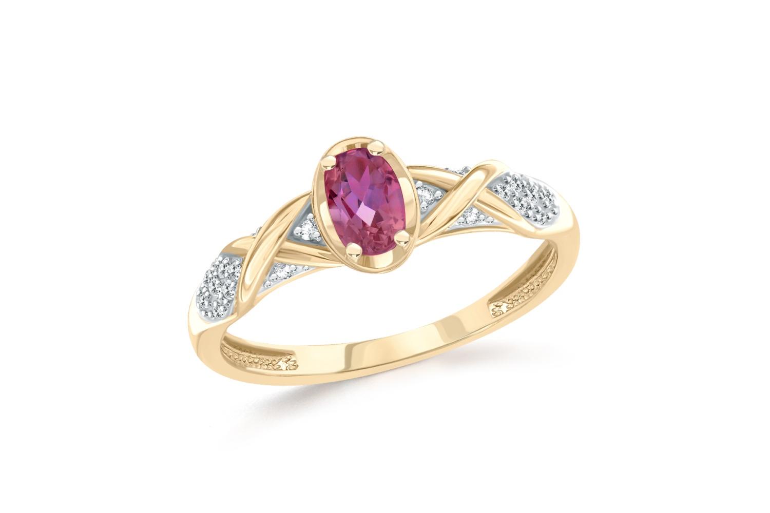 Мастера компании NEWGOLD, приложив всё свое мастерство и искусство, создали для Вас на нашем собственном производстве Кольцо из жёлтого золота с родолитом и 20 фианитами.