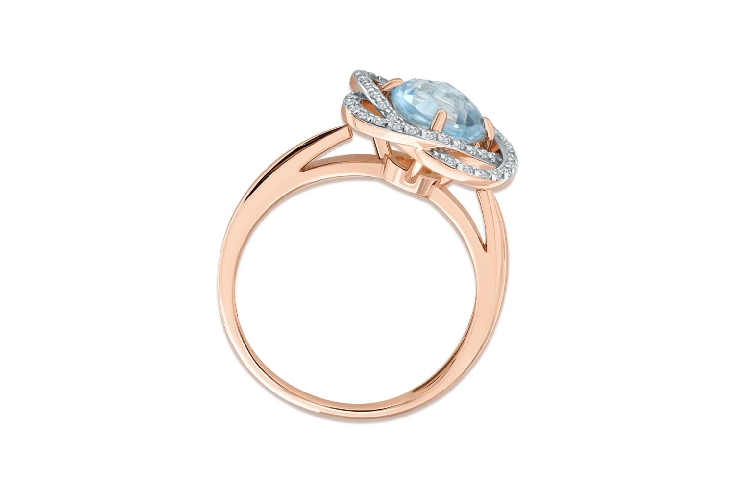 Мастера компании NEWGOLD, приложив всё свое мастерство и искусство, создали для Вас на нашем собственном производстве Кольцо из красного золота с топазом sky и 52 фианитами.