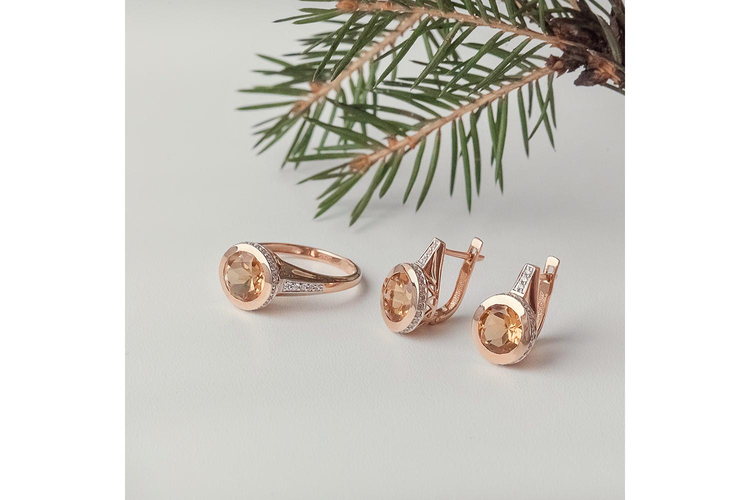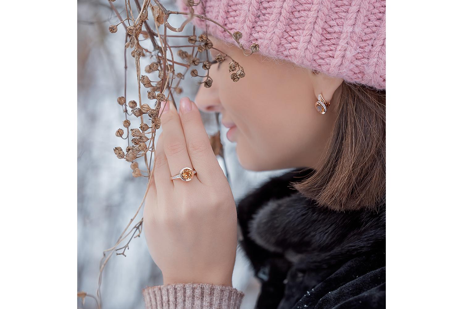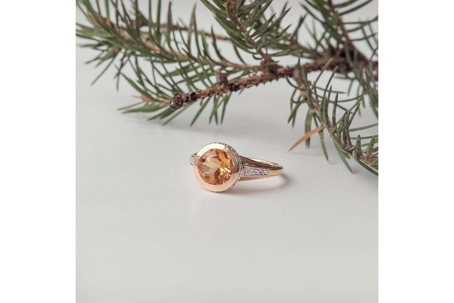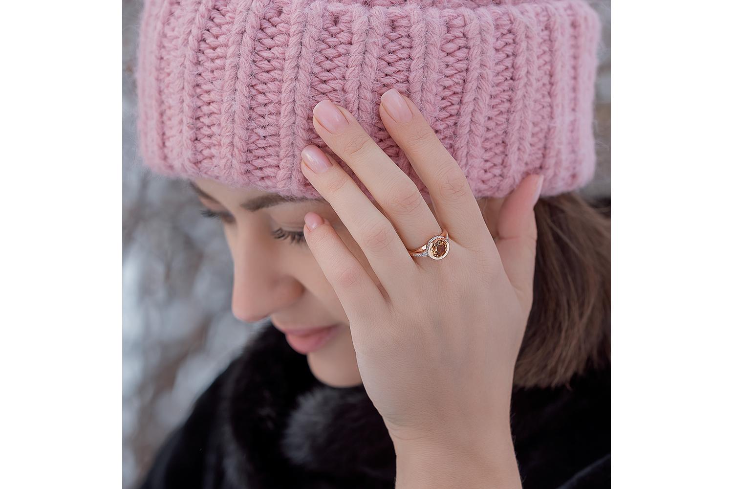 Мастера компании NEWGOLD, приложив всё свое мастерство и искусство, создали для Вас на нашем собственном производстве Кольцо из красного золота с цитрином и 36 фианитами.