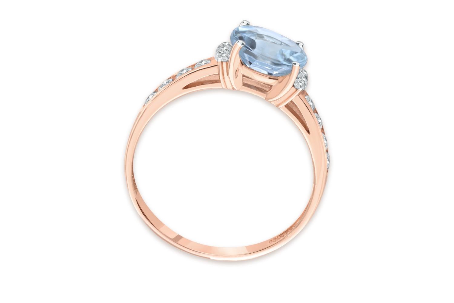 Изысканное ювелирное произведение - кольцо из красного золота 585 пробы, украшенное нежно-голубым топазом и россыпью сверкающих фианитов. Центральный камень - топаз небесно-голубого оттенка - занимает доминирующее положение, притягивая взгляд своей прозрачностью и глубиной. Его огранка создает эффект внутреннего свечения, который подчеркивает природную красоту минерала. Металлическая основа - красное золото - обладает теплым, нежным оттенком, который великолепно контрастирует с холодным блеском топаза.