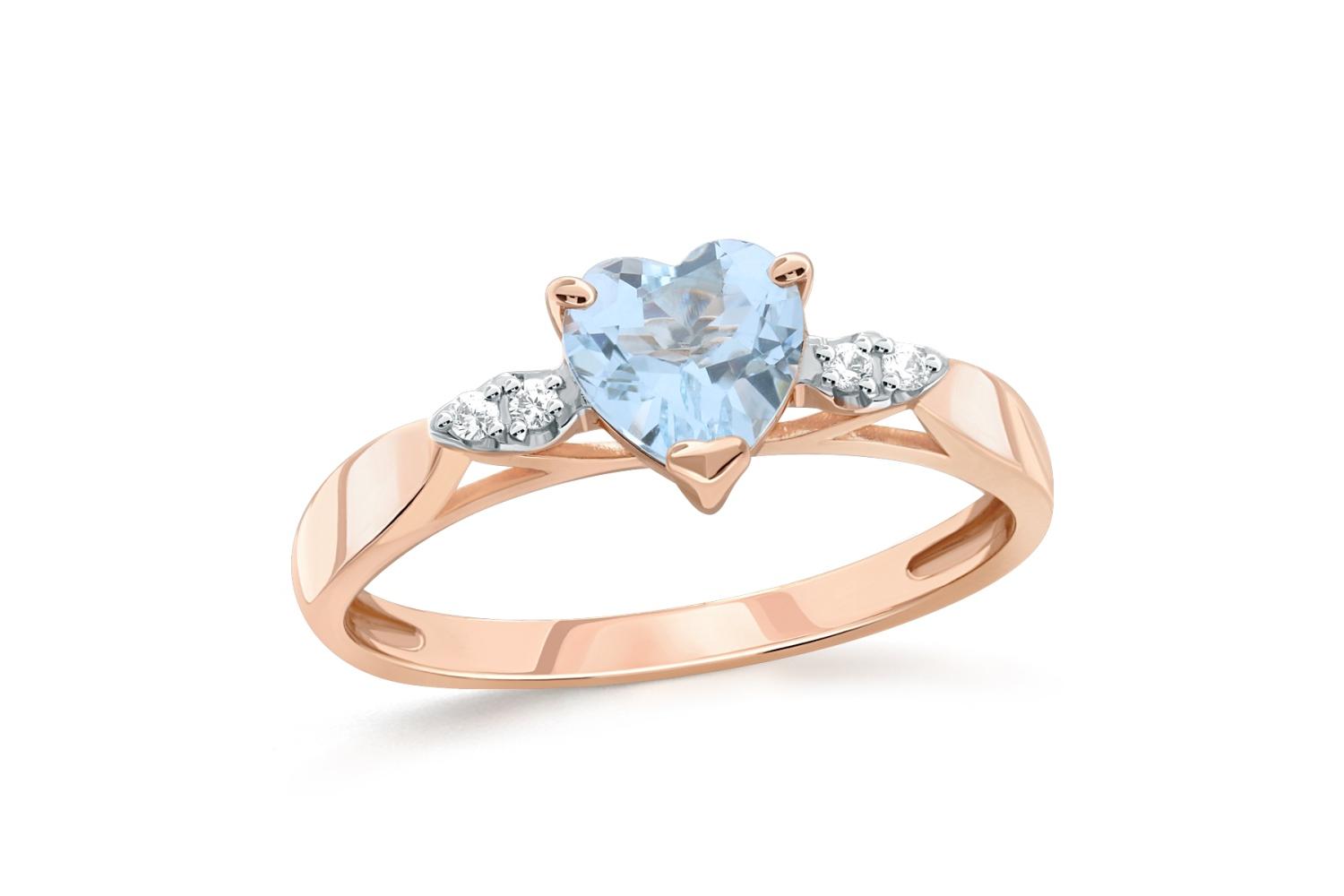 Мастера компании NEWGOLD, приложив всё свое мастерство и искусство, создали для Вас на нашем собственном производстве Кольцо Сердце из красного золота с топазом sky и 4 фианитами.