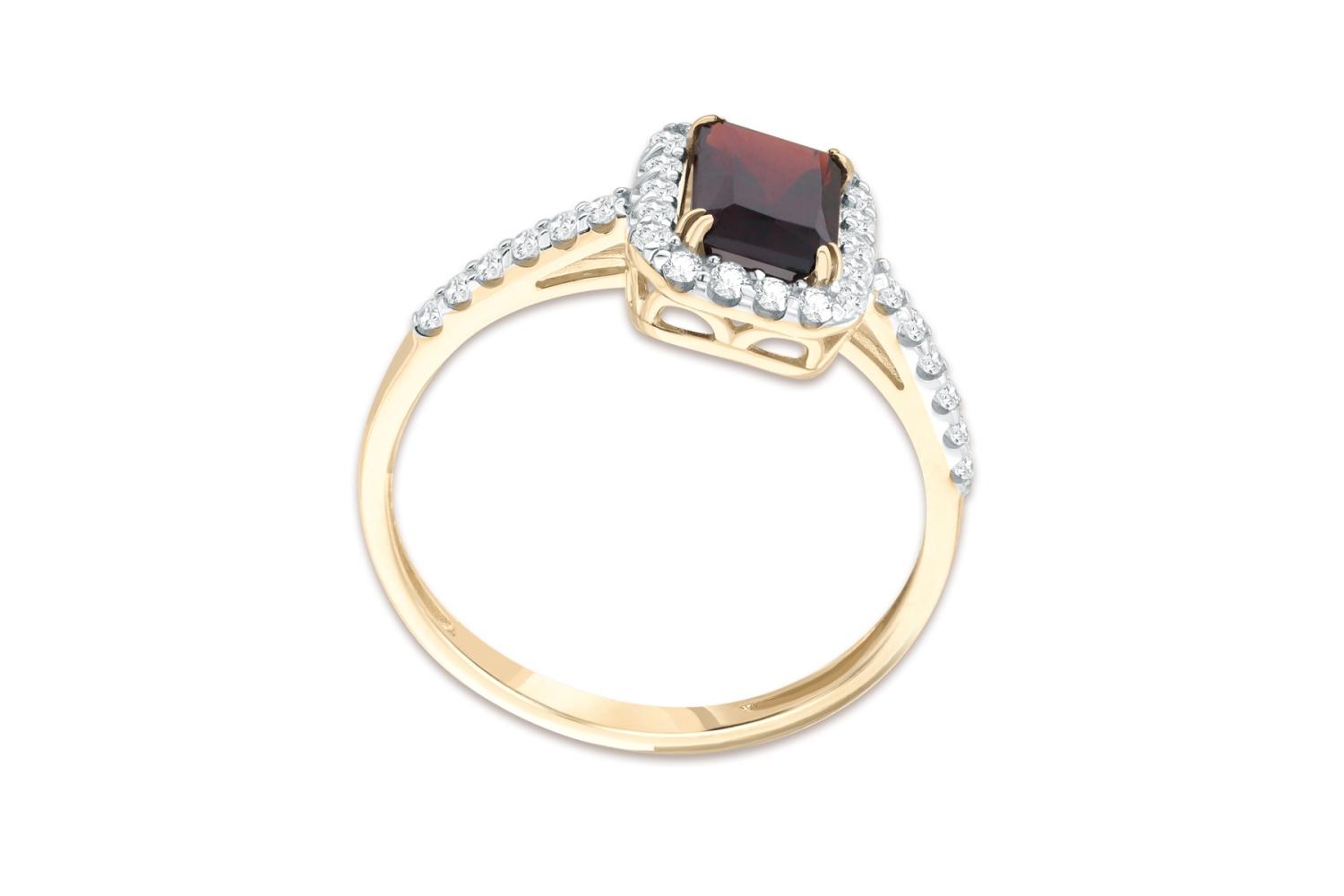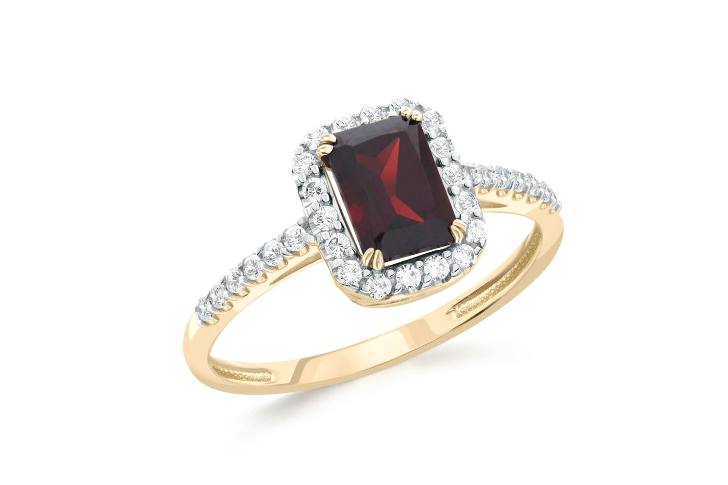 Мастера компании NEWGOLD, приложив всё свое мастерство и искусство, создали для Вас на нашем собственном производстве Кольцо из жёлтого золота с гранатом и 30 фианитами.